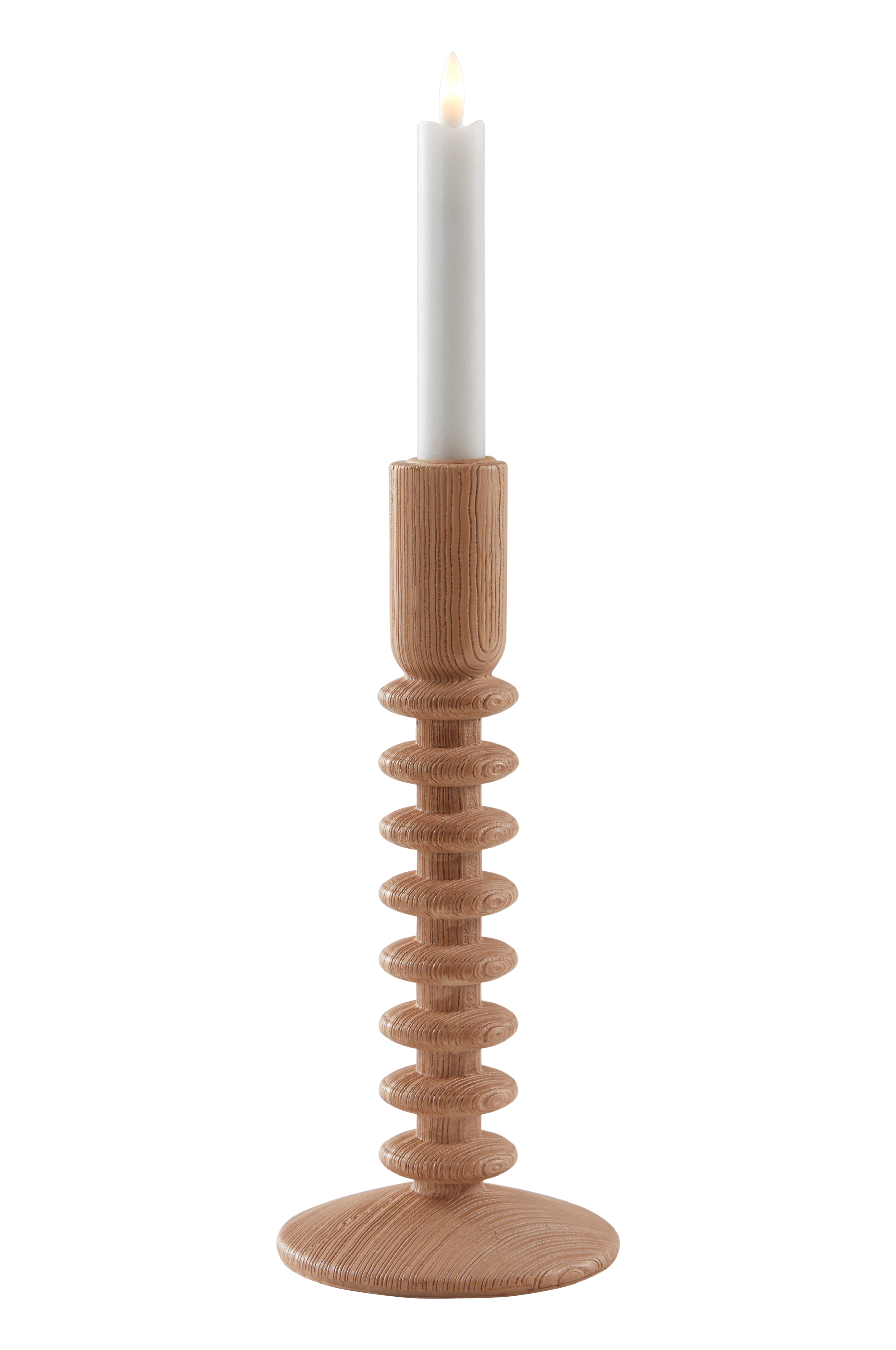 Fint formet lysestake av polyresin med lys trefinish. Lysestaken har herlig retrofølelse i sann nordisk ånd. Lys medfølger ikke.