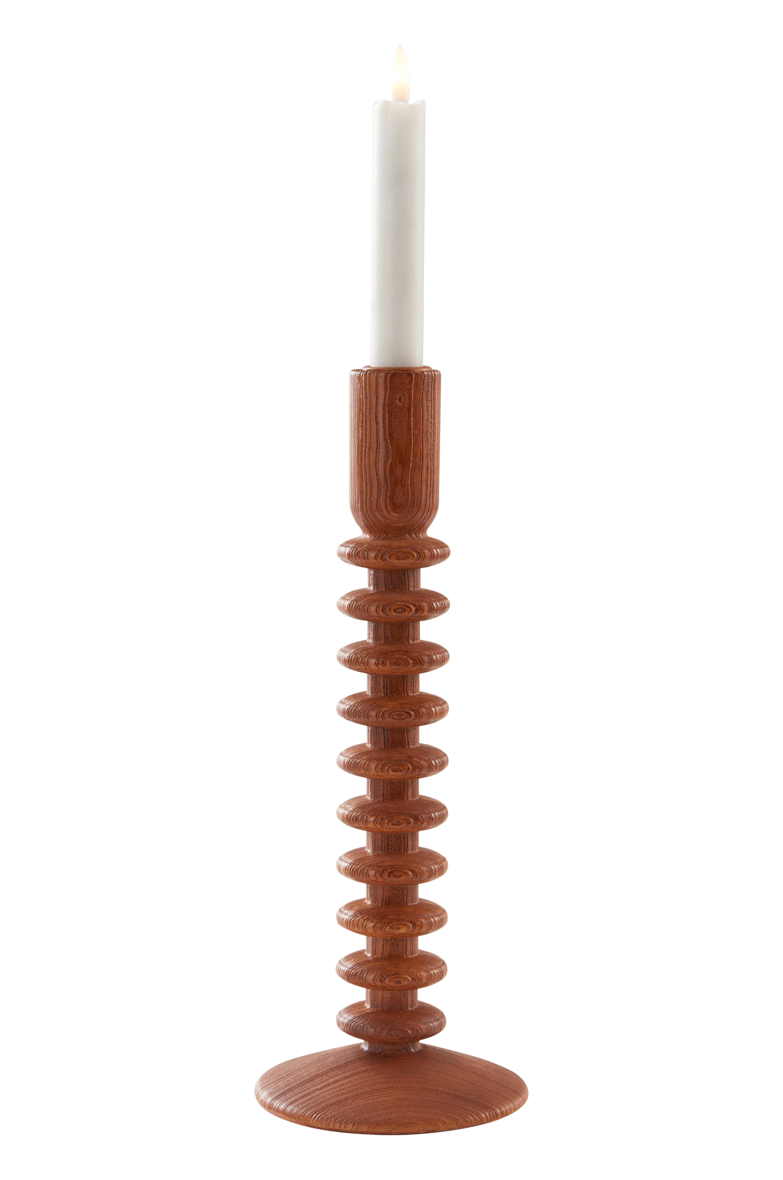 Fint formet lysestake av polyresin med brun trefinish. Lysestaken har herlig retrofølelse i sann nordisk ånd. Lys medfølger ikke.