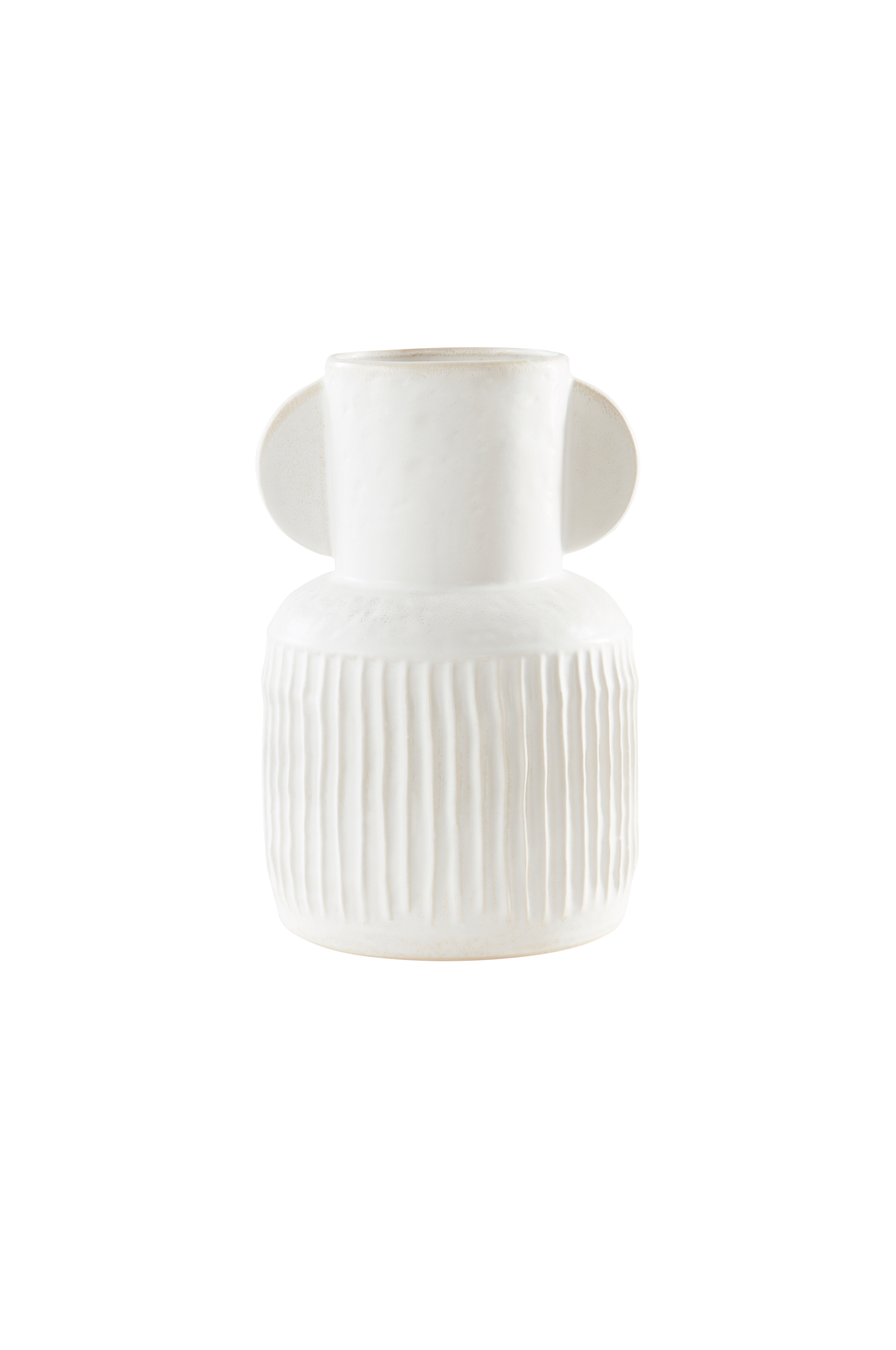Vase av keramikk. Vasen er håndlaget, noe som gjør hvert eksemplar unikt. Husk at keramikk kan slippe gjennom fukt.