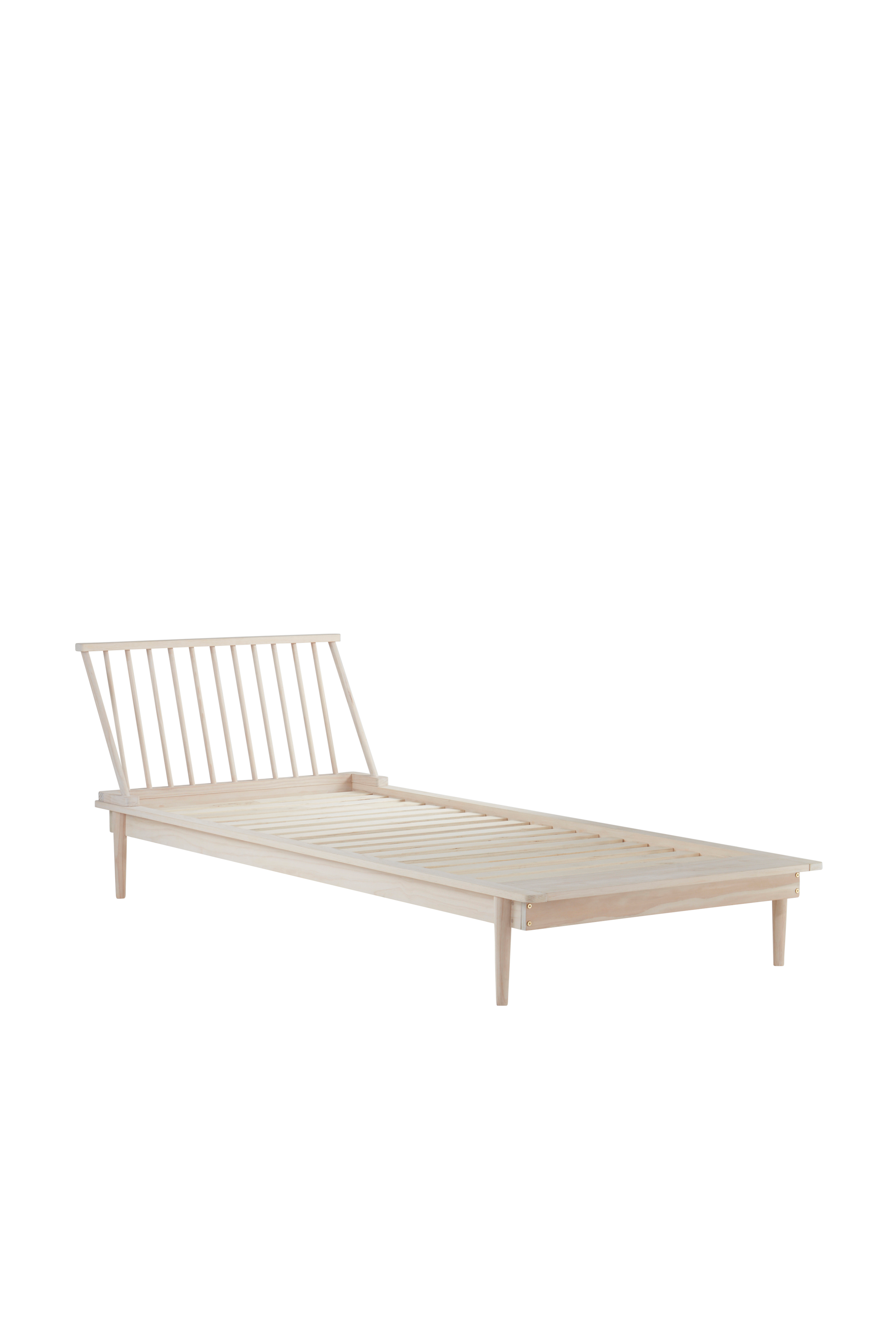 Barneseng av FCS-sertifisert furu med såpet overflate og ribbebunn av kryssfiner. VILJO er en stilren barneseng i klassisk design som blir en pen detalj på barnerommet. Gavlen med ribber og deilig helling innbyr til koselige lesestunder, og ved fotenden er det en praktisk, innebygd benk.