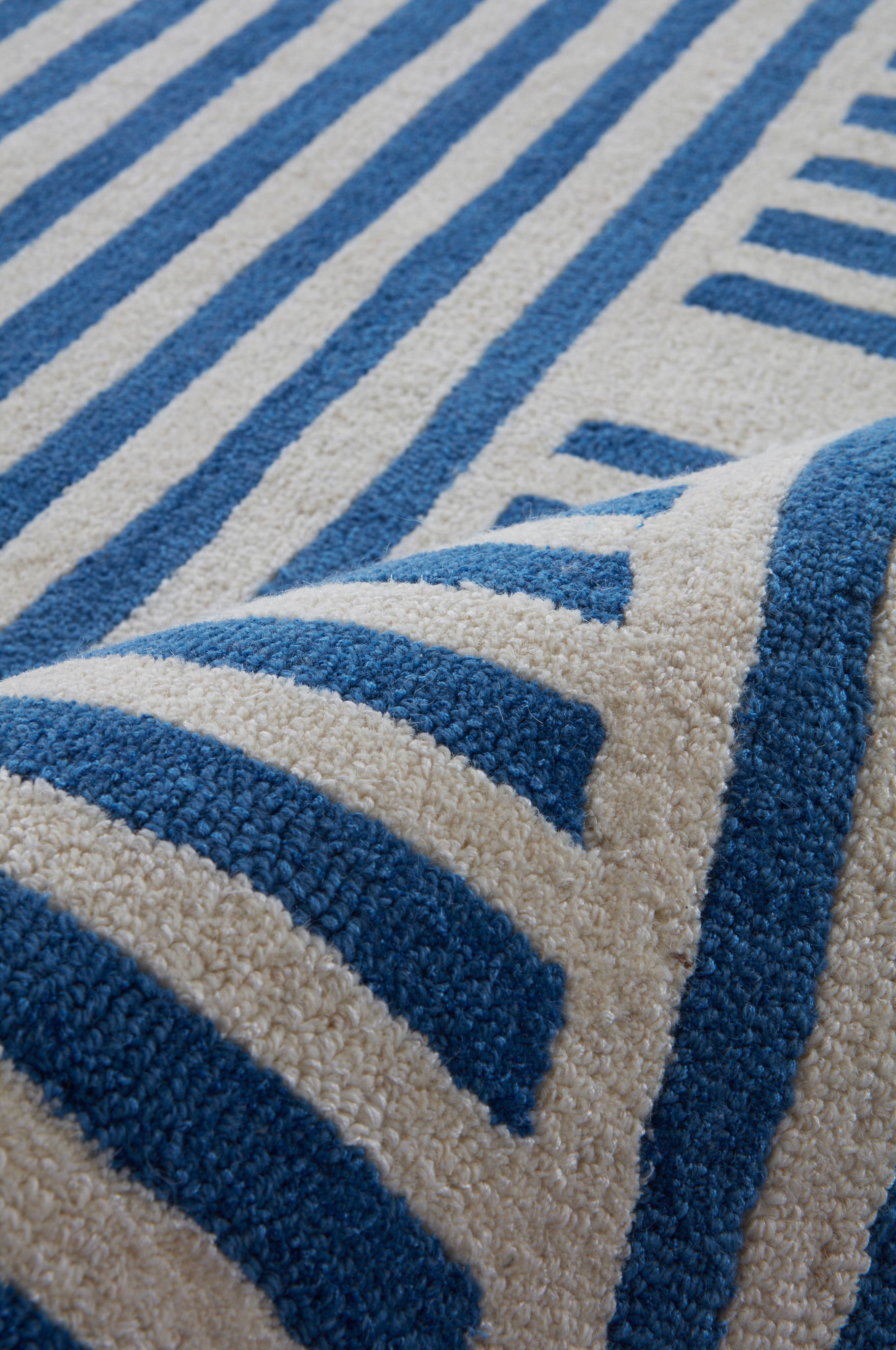 Håndtuftet ullteppe i fin kvalitet med iblandet viskose. Den myke og varme luggen er i to farger og tuftet i et vakkert mønster som gir en rolig og kvikk følelse på samme tid. Den fine kvaliteten gjør teppet luksuriøst og behagelig. Det fine håndverk gjør hver eksemplar unikt. Lugghøyde 0,5-0,6 cm. Tykkelse 1-1,2 cm. 3800-4000 g/m².
