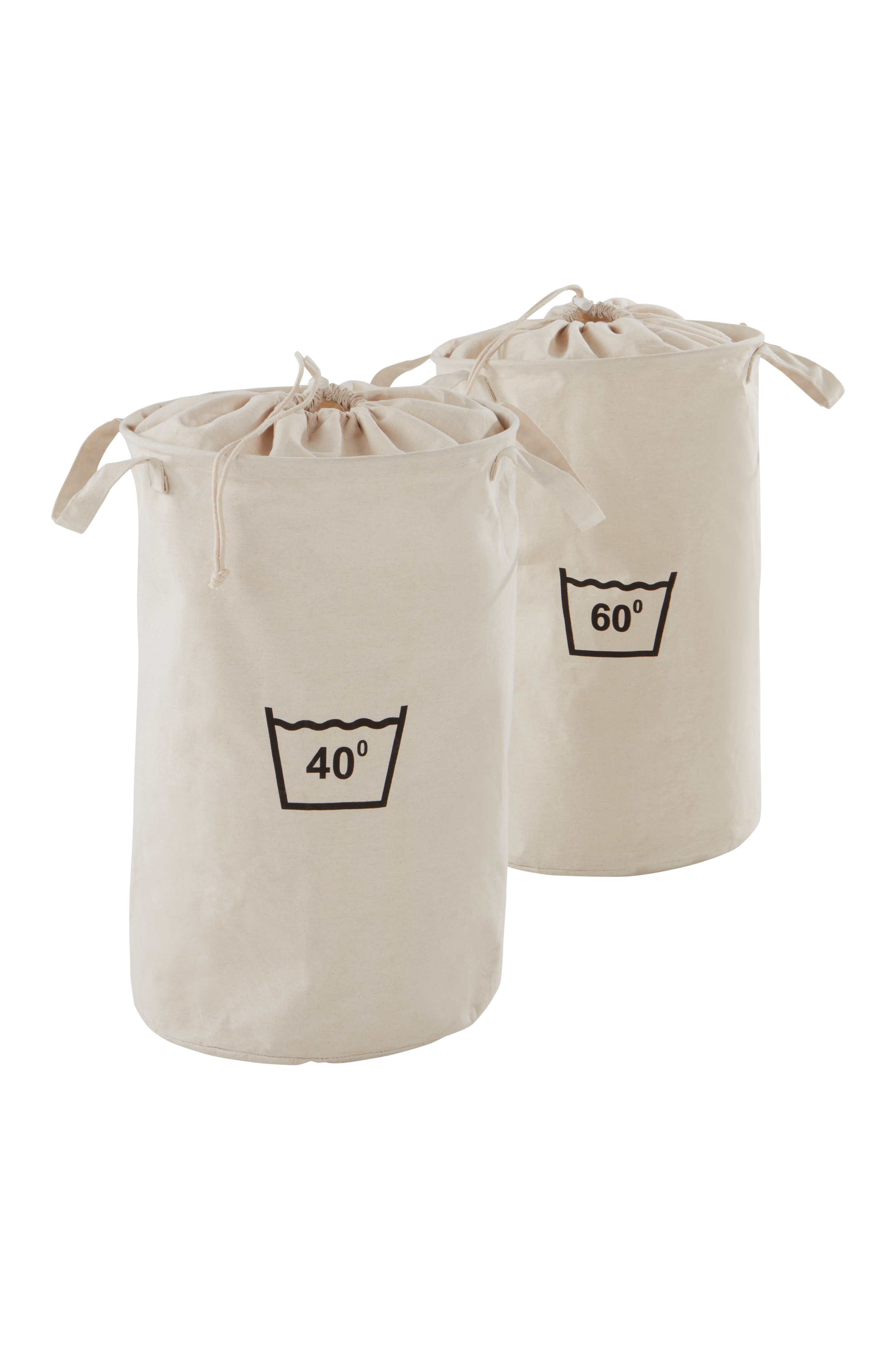 2-pk skittentøyskurver i vevd stoff av bomull, begge har robust innside, laminert med polypropylen. Begge skittentøyskurvene har ulike trykk, 40° og 60°, slik at du praktisk og enkelt kan sortere vask umiddelbart. Når du skal vaske er sorteringsarbeidet ferdig, og du bestemmer hvilken vask som står for tur. Skittentøykurvene er runde med to praktiske håndtak slik du kan bære dem til vaskerommet, også om det er et stykke å gå.