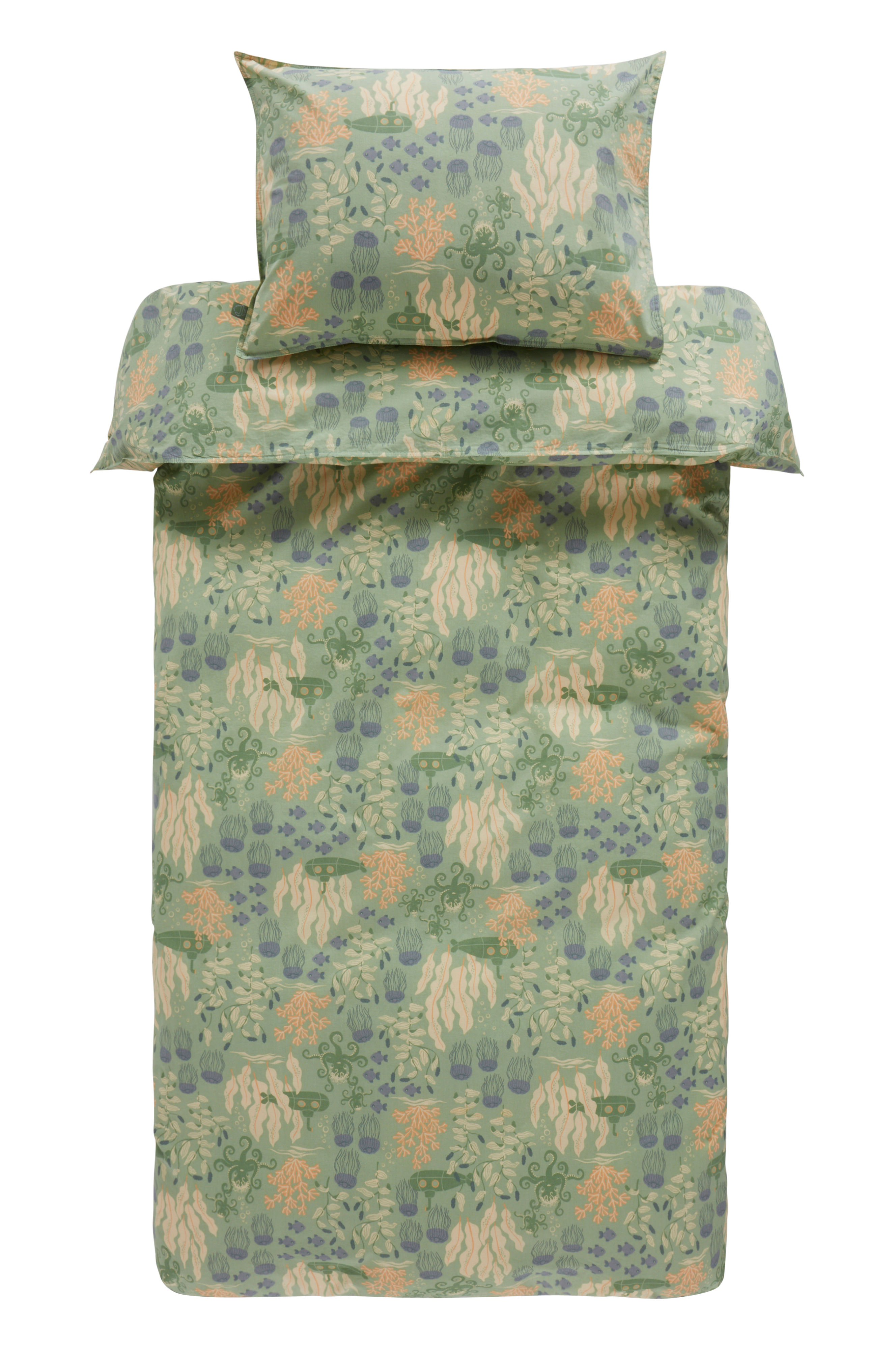 Sengesett i 2 deler i herlig percale av økologisk bomull med trykt mønster designet av Maria Carlberg. Det herlige mønsteret er inspirert av et eventyrliv under vannflaten, og fargene er rolige og harmoniske. WATERS er en fin kolleksjon som gir rom for fantasi. Percale er et ekstra mykt og deilig stoff som veves med tynne, fine bomullstråder. Trådtetthet på 200 tc. (Trådtettheten forteller om antallet tråder, thread counts, pr. kvadrattomme i et stoff. Jo høyere trådtetthet, desto høyere kvalitet.)