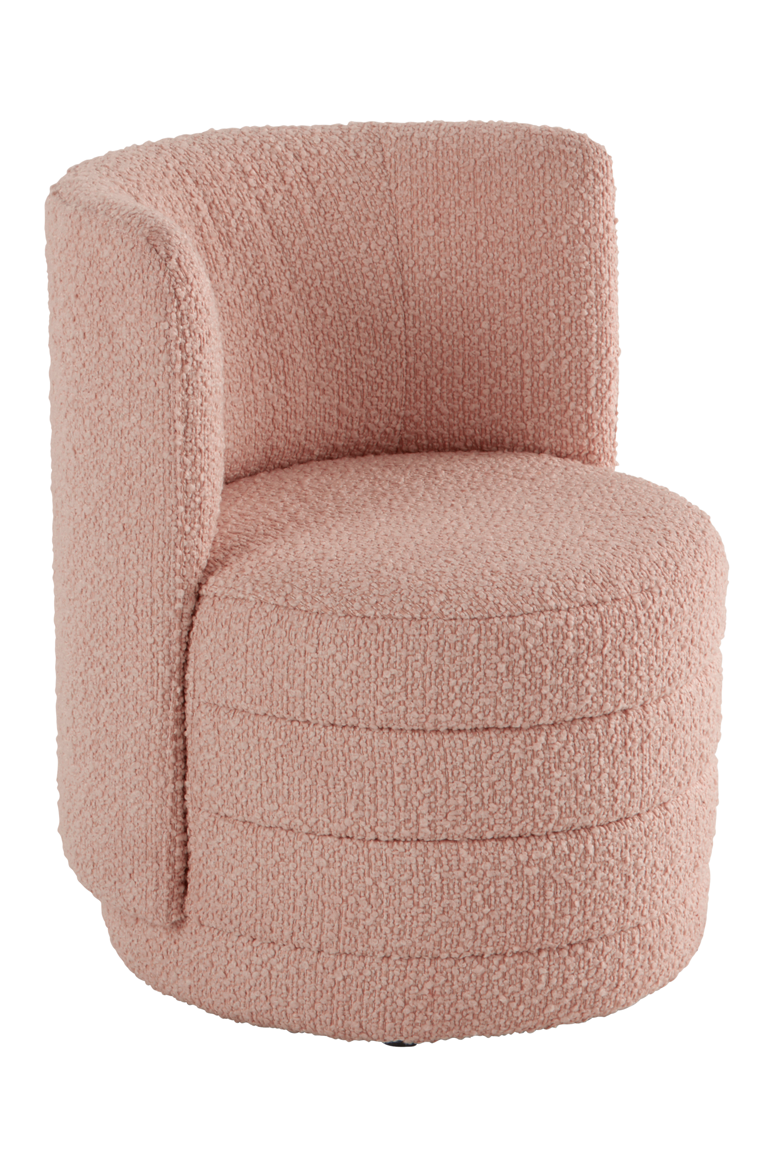 WATSON er en herlig og rund liten lenestol med mykt bouclétrekk. Lenestolen er både fin og herlig. Det er perfekt for barn å få sitte komfortabelt i tilpassede møbler. Stammen er av FSC-merket furu og kryssfiner kombinert med elastiske bånd, skum og polyesterfyll, noe som gir en solid, stabil og komfortabel lenestol. Setet har dessuten nozagfjær for ekstra komfort. Det myke boucléstoffet er av 95% polyester og 5% akryl. Stoffet har slitestyrke på 40 000 Martindale. Trekket er ikke avtagbart.