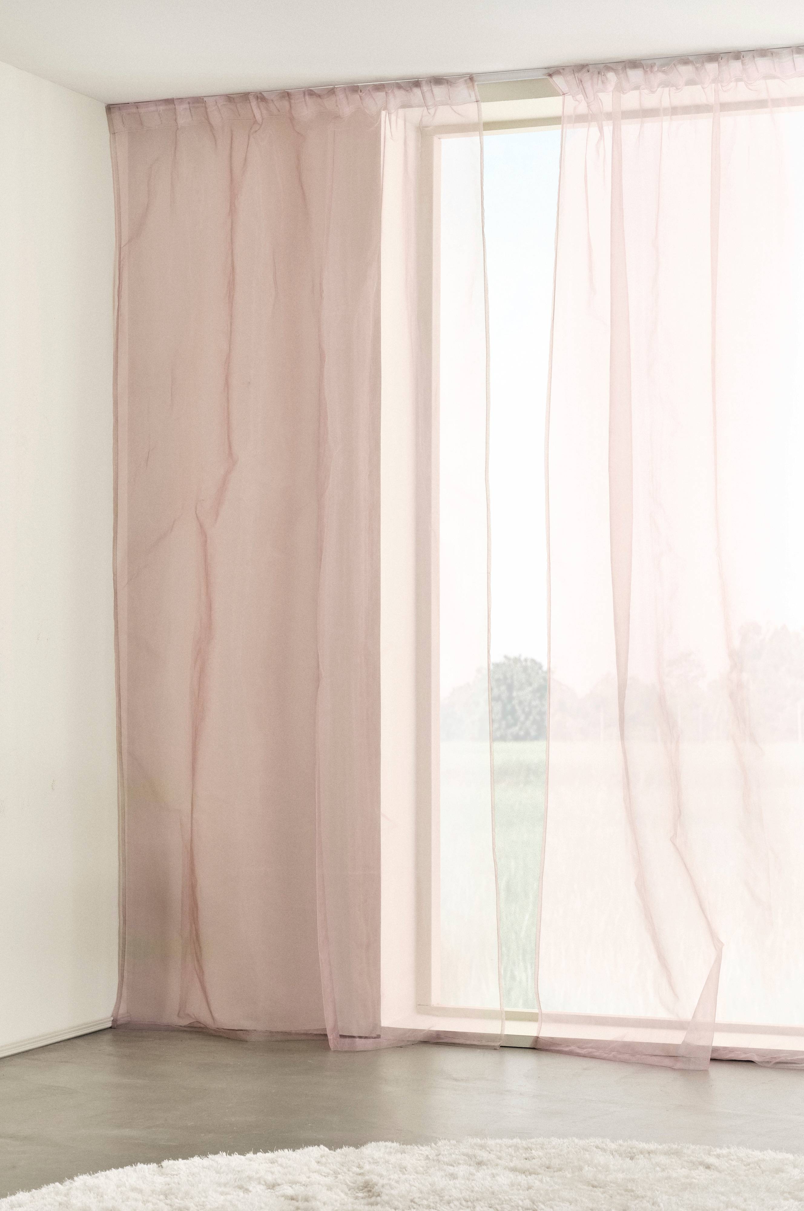 To gardinlengder i ensfarget organza av polyester og polyamid. Organza er et vevd stoff som er transparent med tynn og luksuriøs følelse. Gardinene er elegante alene og vakre å kombinere med for eksempel lengder i linstoff som skaper spennende materialblanding.