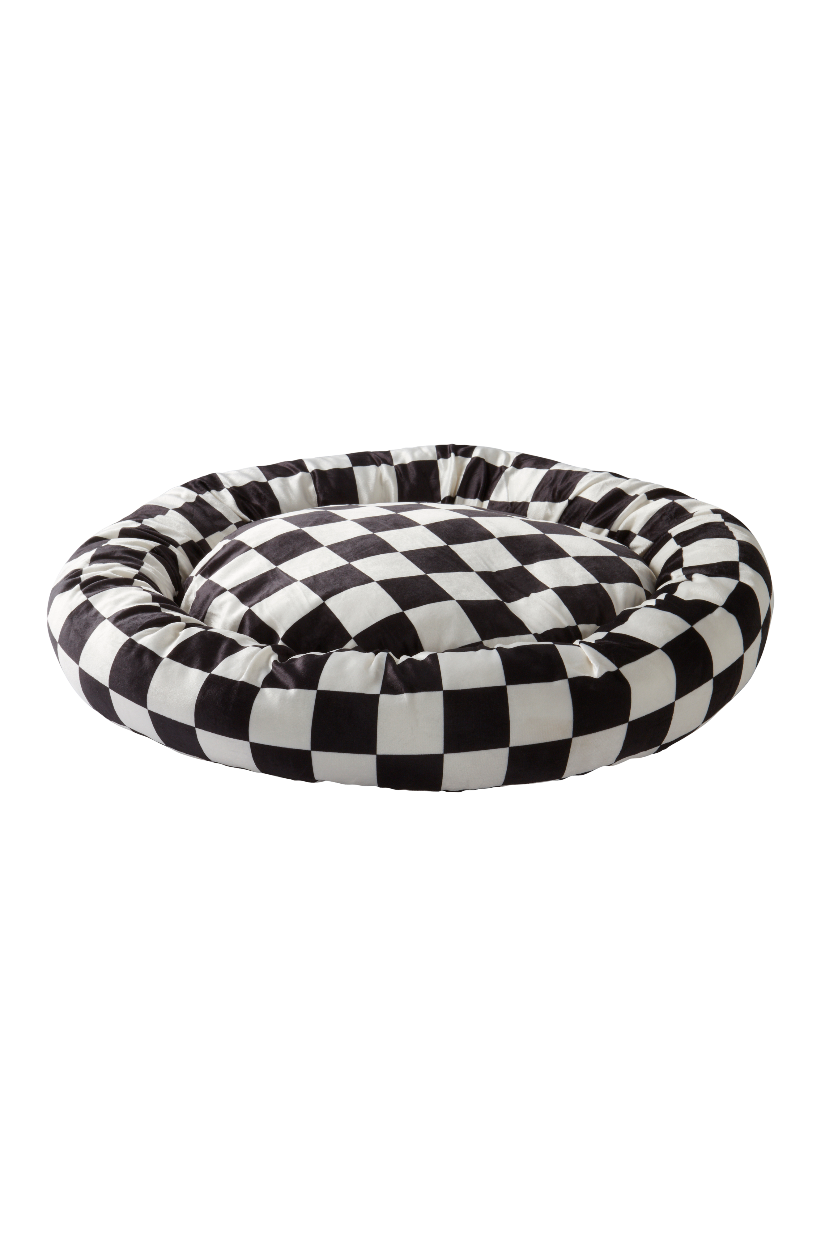 Rund, sjakkrutete hundeseng med mønstertrykt fløyelstrekk av polyester og mykt fyll av polyestervatt. YOSHINI passer fint til både hunder og katter. Den myke kanten rundt er vattert og gir komfortabelt etter når hunden eller katten strekker seg, og den former seg deilig. Sengen er vaskbar, og trekket er ikke avtagbart.