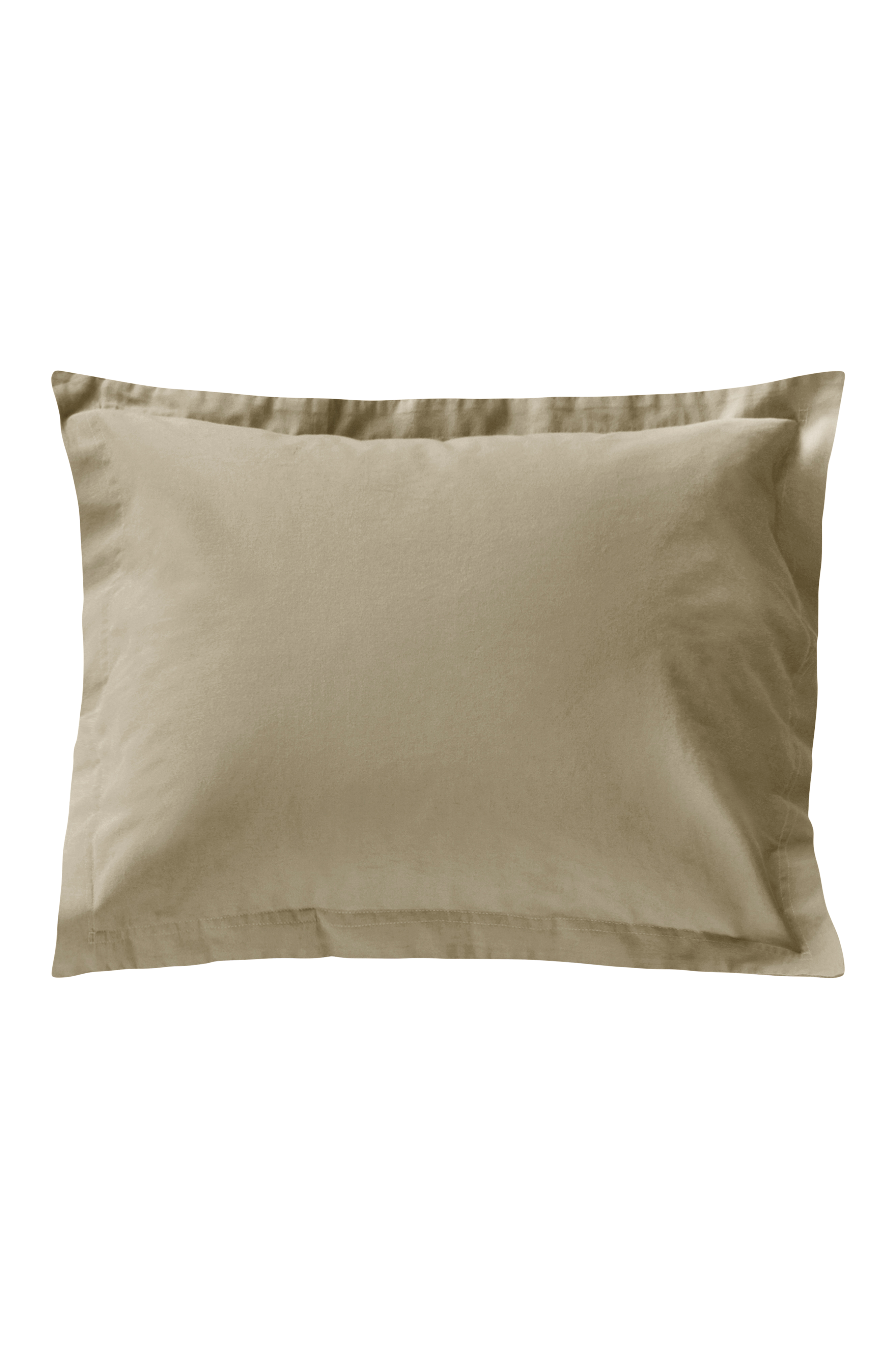 1-pk putevar i økologisk bomull. Putevaret er plaggvasket. Det betyr at det er vasket etter søm slik at følelsen blir ekstra myk og deilig. Putevaret har en 3 cm bred vinge rundt, dobbeltsømmer og knapper for lukking. Pakket i en fin stoffpose med trykk og snoråpning. Trådtetthet på 120 tc. (Trådtettheten forteller om antallet tråder, thread counts, pr. kvadrattomme i et stoff. Jo høyere trådtetthet, desto høyere kvalitet).