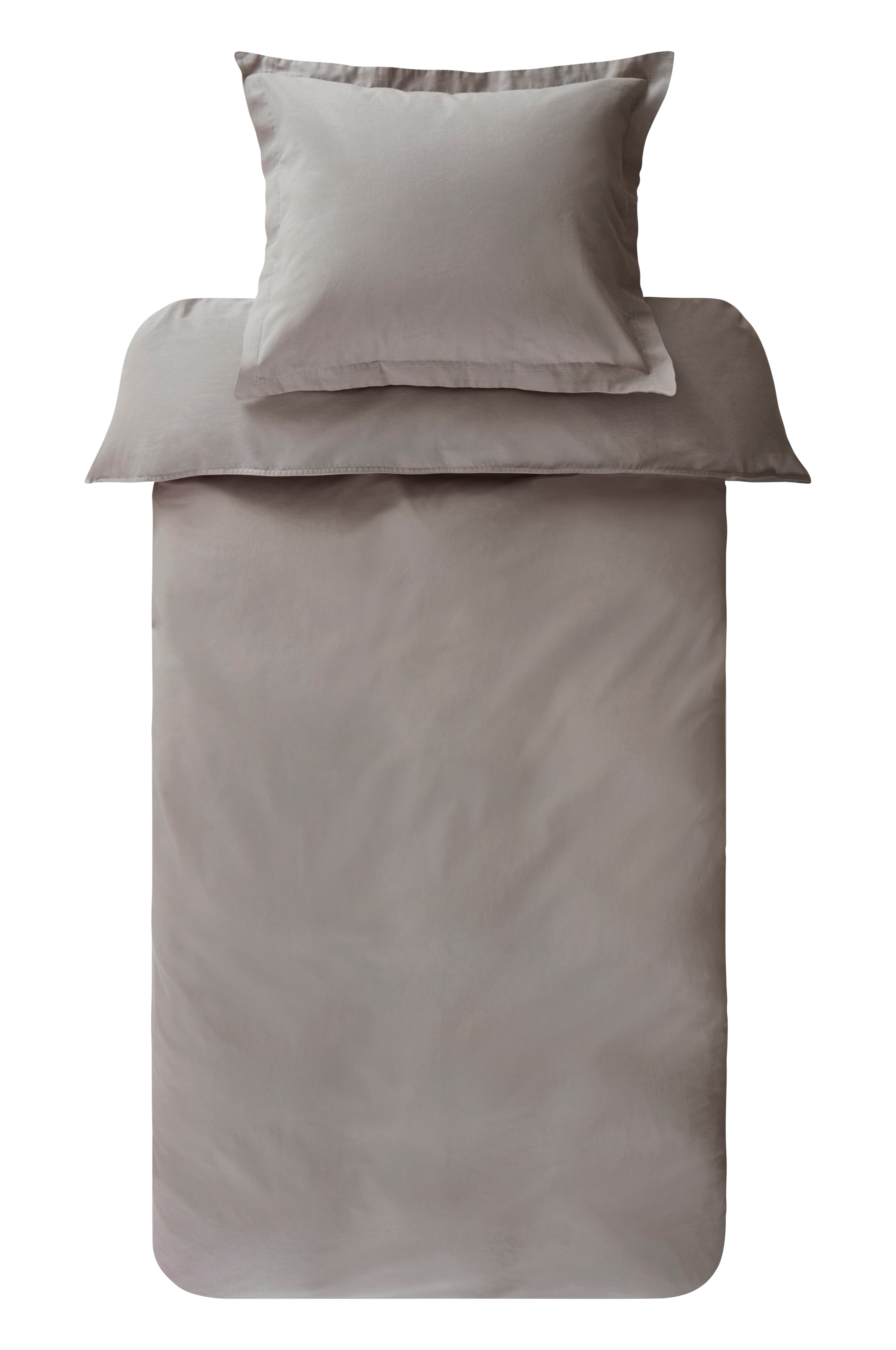 Ensfarget sengesett i 2 deler av økologisk bomull. Settet er plaggvasket. Det betyr at det er vasket etter søm slik at følelsen blir ekstra myk og deilig. Dobbeltsømmer og knapper for lukking. Putevaret har en 3 cm bred vinge rundt. Settet kommer i en fin stoffpose med trykk og snoråpning. Trådtetthet på 120 tc. (Trådtettheten forteller om antallet tråder, thread counts, pr. kvadrattomme i et stoff. Jo høyere trådtetthet, desto høyere kvalitet).