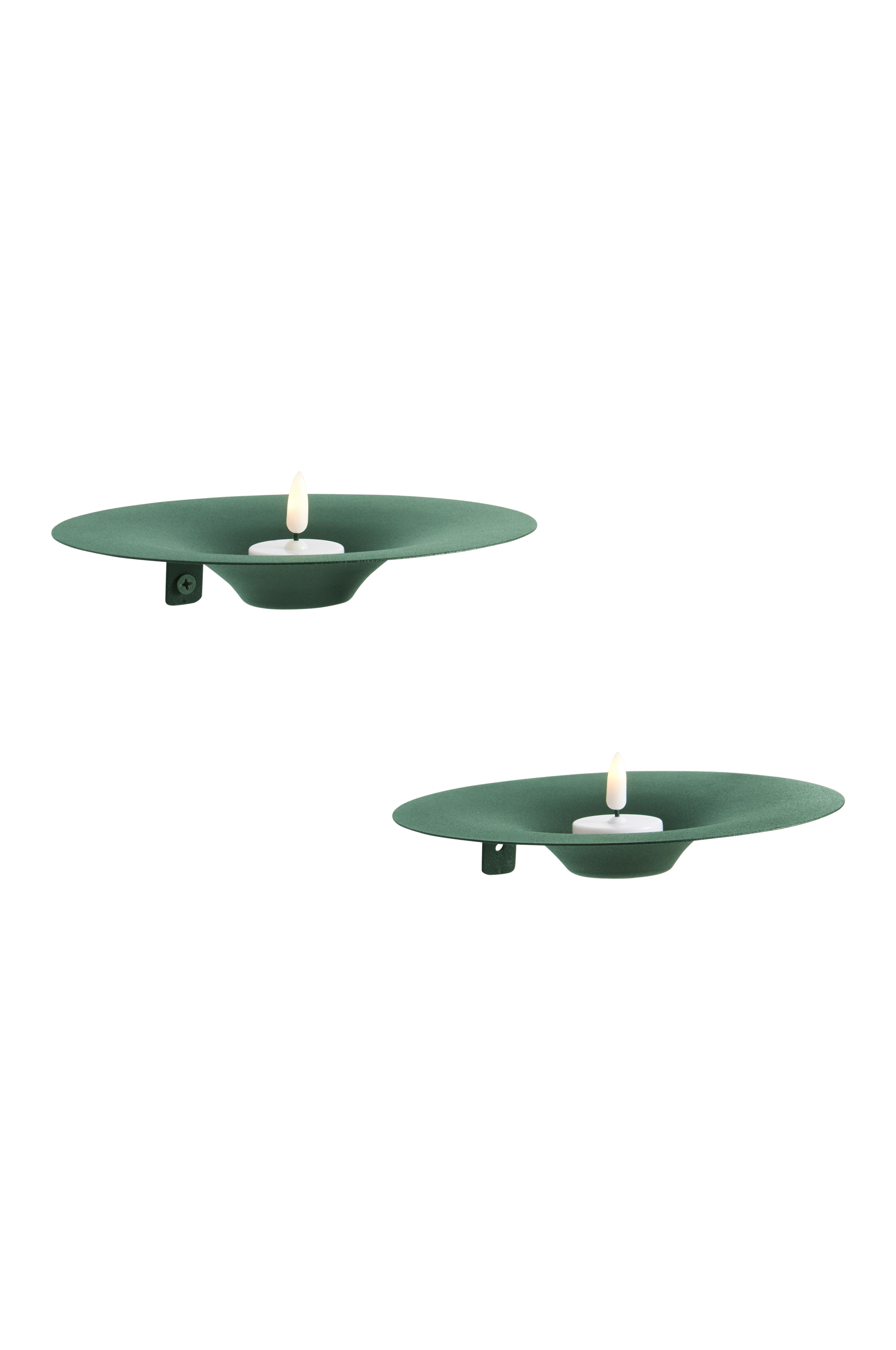 2-pk vegglysestaker av jern med matt pulverlakk. Lysestakene passer til telys og skrues opp på veggen, skruer ikke inkludert. Lys medfølger ikke.