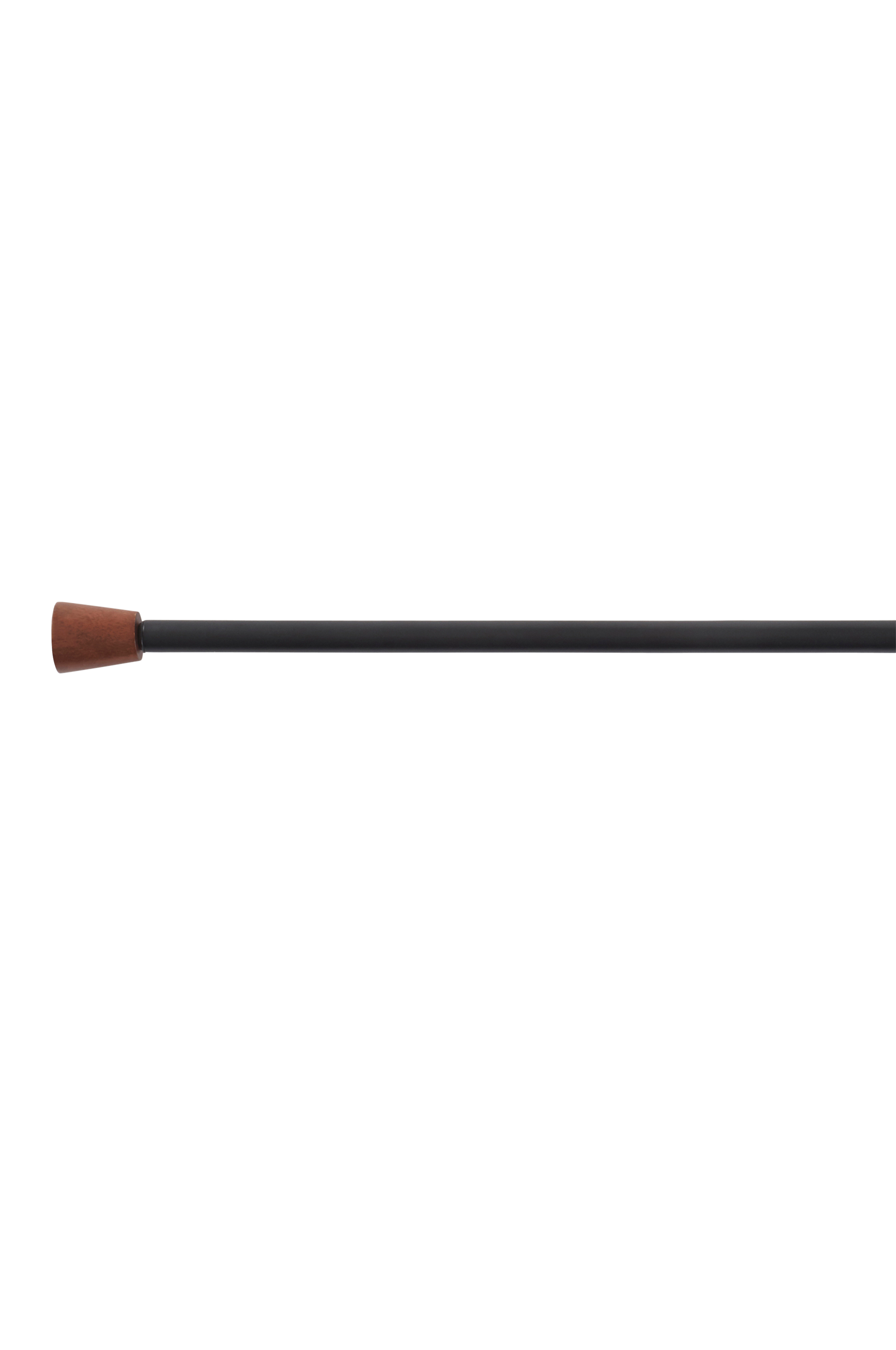 Gardinstang av jern med elegant formede endeknotter av FSC-sertifisert tre. Gardinstangens lengde er justerbar. Endeknottene skrues på. Fem veggfester, skruer og plugg inkludert. Husk at det alltid er underlaget som bestemmer hvilken type festemetode som er best egnet ved montering.