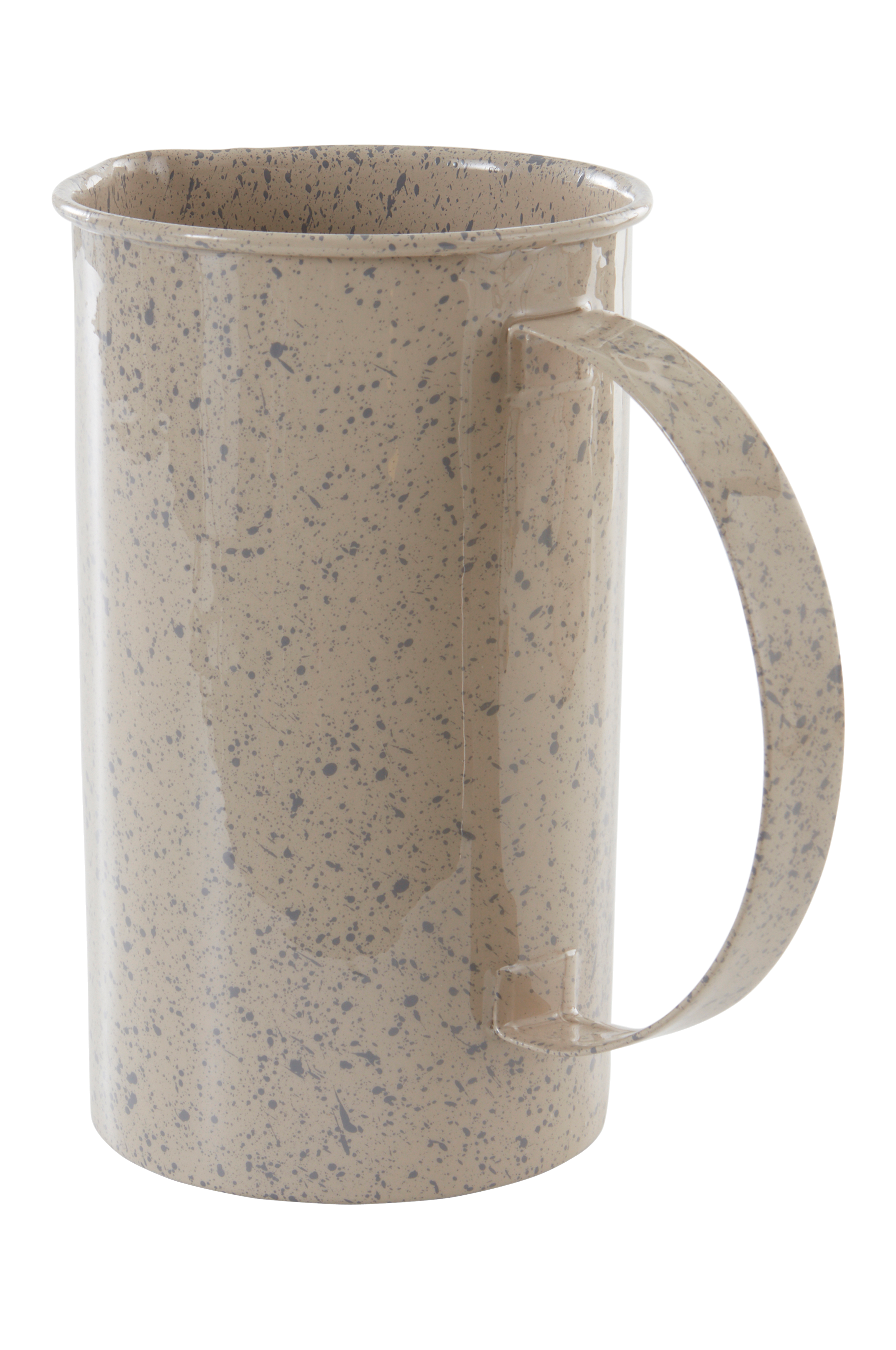 Mugge av metall i tynt gods med pulverlakkert overflate. Muggen har herlig flekkmønster og fin glans. Følelsen kan sammenlignes med gammeldagse emaljemugger. Muggen er rett i modellen med klassisk rullet kant øverst og stort, gripevennlig håndtak som gjør det enkelt å helle. Også innsiden er pulverlakkert og blank.