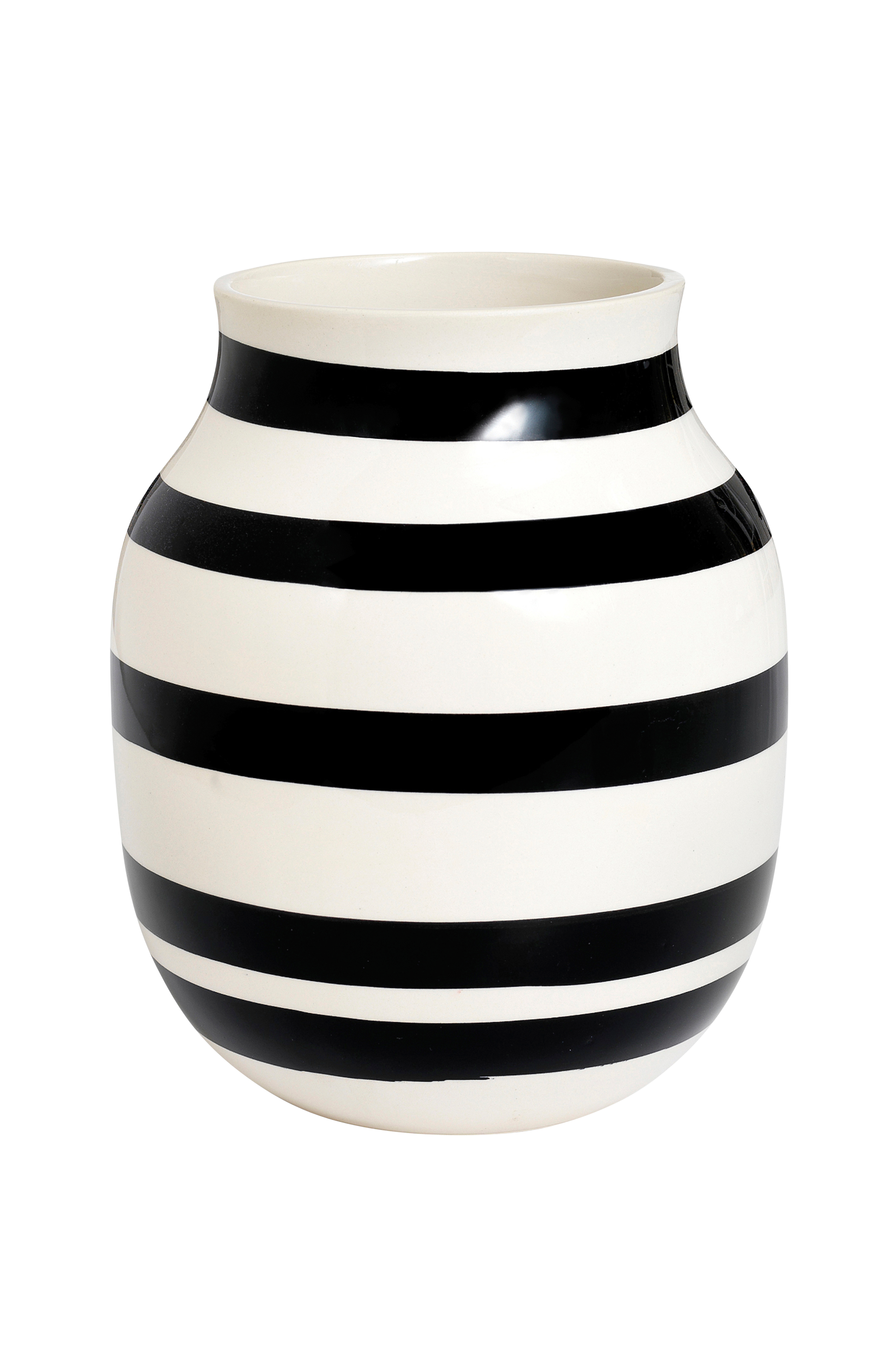 Den klassiske Omaggio-vasen fra Kähler finnes i dag i mange norske hjem, og her er den i en helt spesiell utgave. Her får du den vakre vasen designet av Stilleben, og med striper i fargen ‘scarlet'. Denne fargen gir vasen et moderne uttrykk og tilfører samtidig flust av varme. Dessuten kompletterer denne fargen de grønne nyansene fra naturen spesielt fint, noe som gjør at vasen egner seg perfekt til en bukett med kvister og blomster fra hagen. Vasen måler 20 cm, og er mellomstørrelsen i en serie på totalt tre. Materialet er i fajanse, og vasen har den klassiske Omaggio-formen.