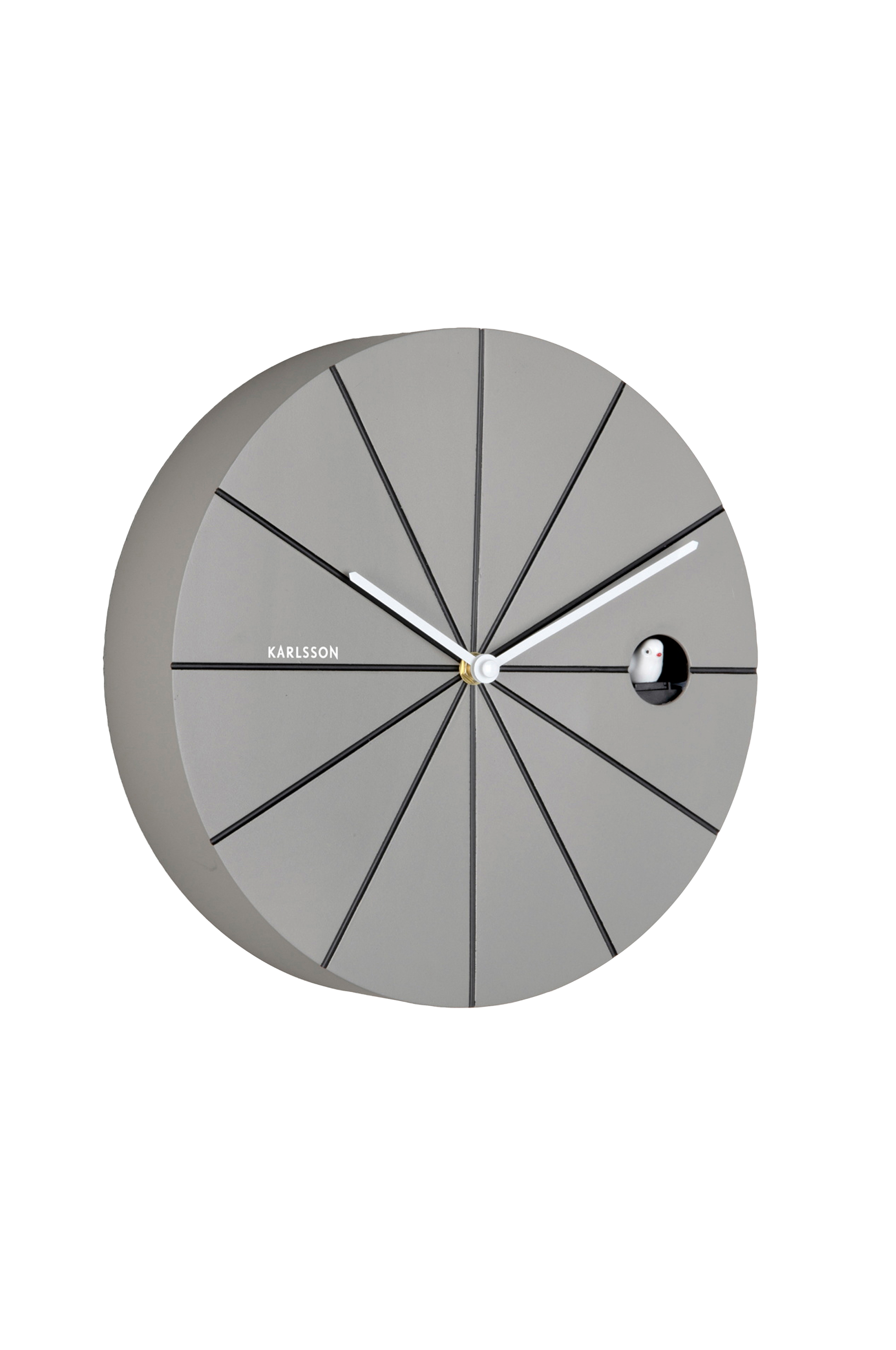 Et moderne blikkfang med en overraskende vri. Karlssons « destacado » cuckoo kombinerer elegant design med et snev av lekenhet. Bak den geometriske fronten skjuler det seg et klassisk element: en fugl som kommer ut med jevne mellomrom og avgir en myk lyd. Skiven er delt inn i subtile linjer som skaper en grafisk effekt, mens det overordnede designet forblir minimalistisk og stilig. En moderne tolkning av den tradisjonelle « cuckoo »-klokken.