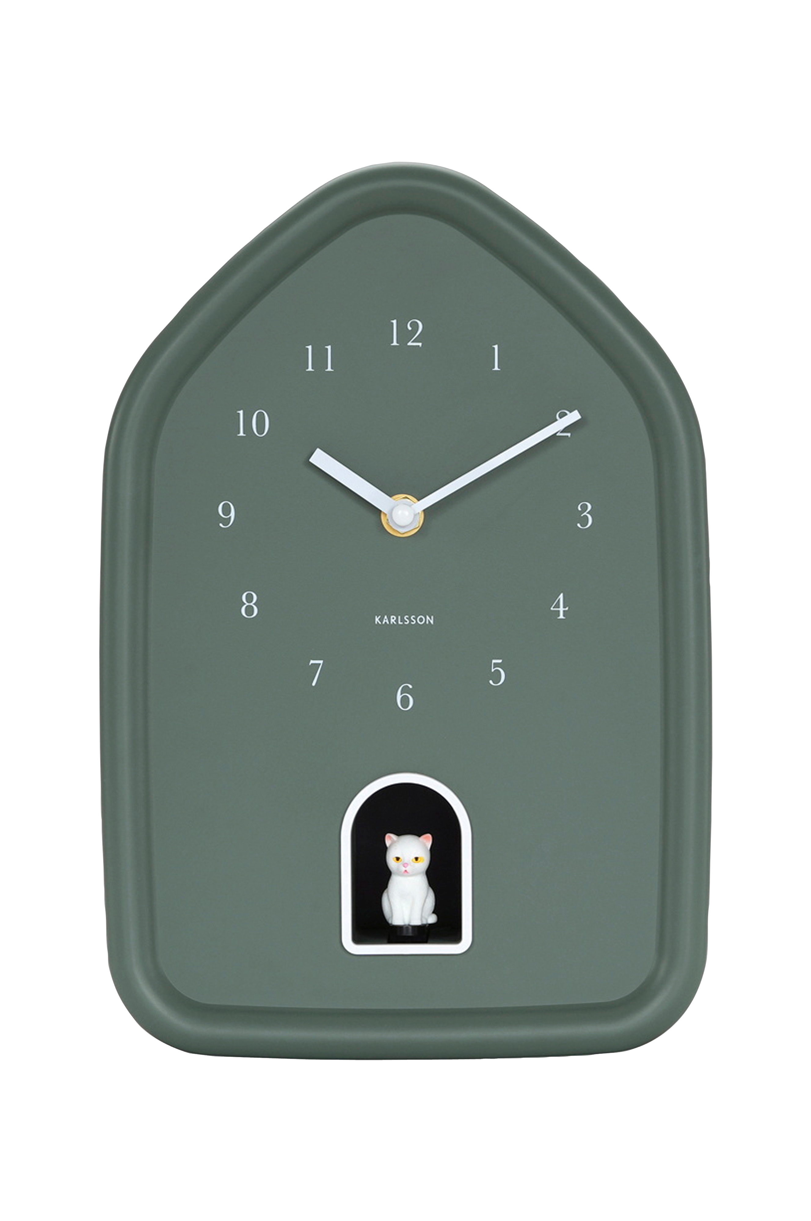 Karlssons modern kitty veggklokke kombinerer enkelhet med et lekent preg. Hver time dukker det opp en søt kattunge som miaer mykt. Det husformede designet og de matte fargene gir klokken et varmt, modern utseende. Perfekt for katteelskere og de som setter pris på elegante, lekne design.