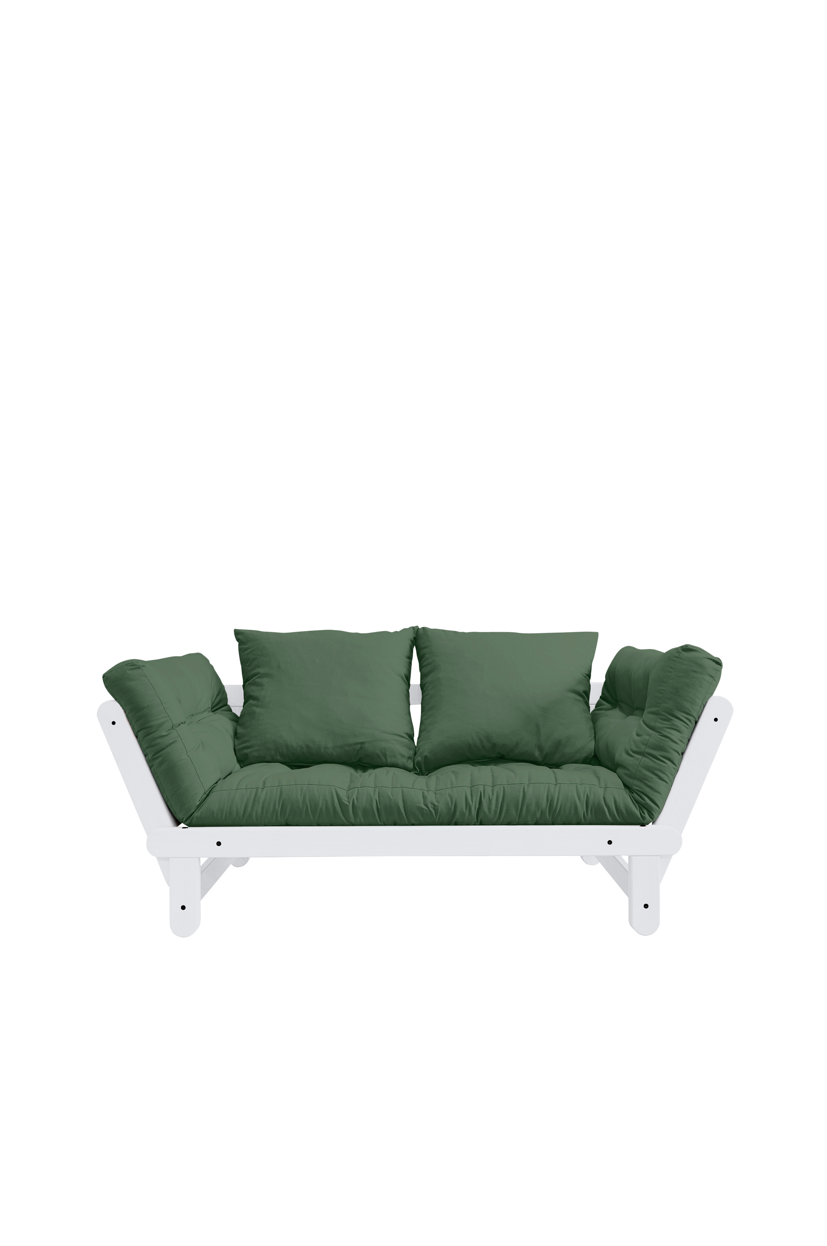 Lean. Read. Dream - Beat-sofaen gir en touch av enkelhet og luftighet hvor du enn plasserer den. Med armlenene oppover skaper den førsteklasses futonmadrassen et innbydende og mykt sted å sitte, enten alene eller sammen. Legg ned et armlene med en rask og enkel bevegelse, og du har en solstol hvor du kan strekke ut, dagdrømme og virkelig slappe av. Legg ned det andre armlenet, og du får en enkeltseng som er helt unik.