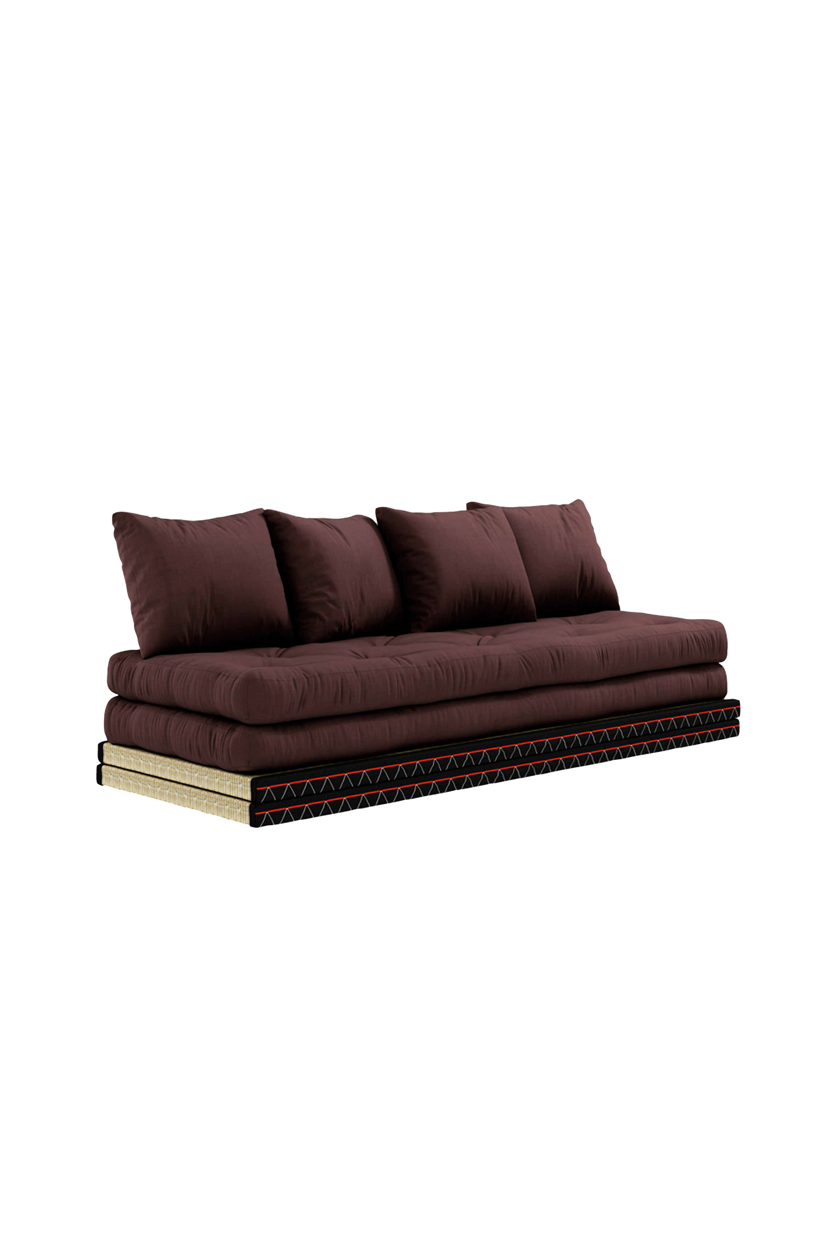 Sit. Party. Dream - Chico er en av produsentens mest grunnleggende og brukervennlige design, samtidig som den er svært tilpasningsdyktig til forskjellige behov. Chico er bygget av to Tatami-tepper, to futonmadrasser og to putesett. Det er ingen hengsler; bitene passer sammen uten tilkoblingsdeler. Det betyr at du enkelt kan konvertere Chico fra en seksjon til en liten sofa og en dobbeltseng! Den enkle, men likevel effektive sofaen er perfekt for fester, avkobling og overnattingsgjester. Tredetaljer av massiv furu.