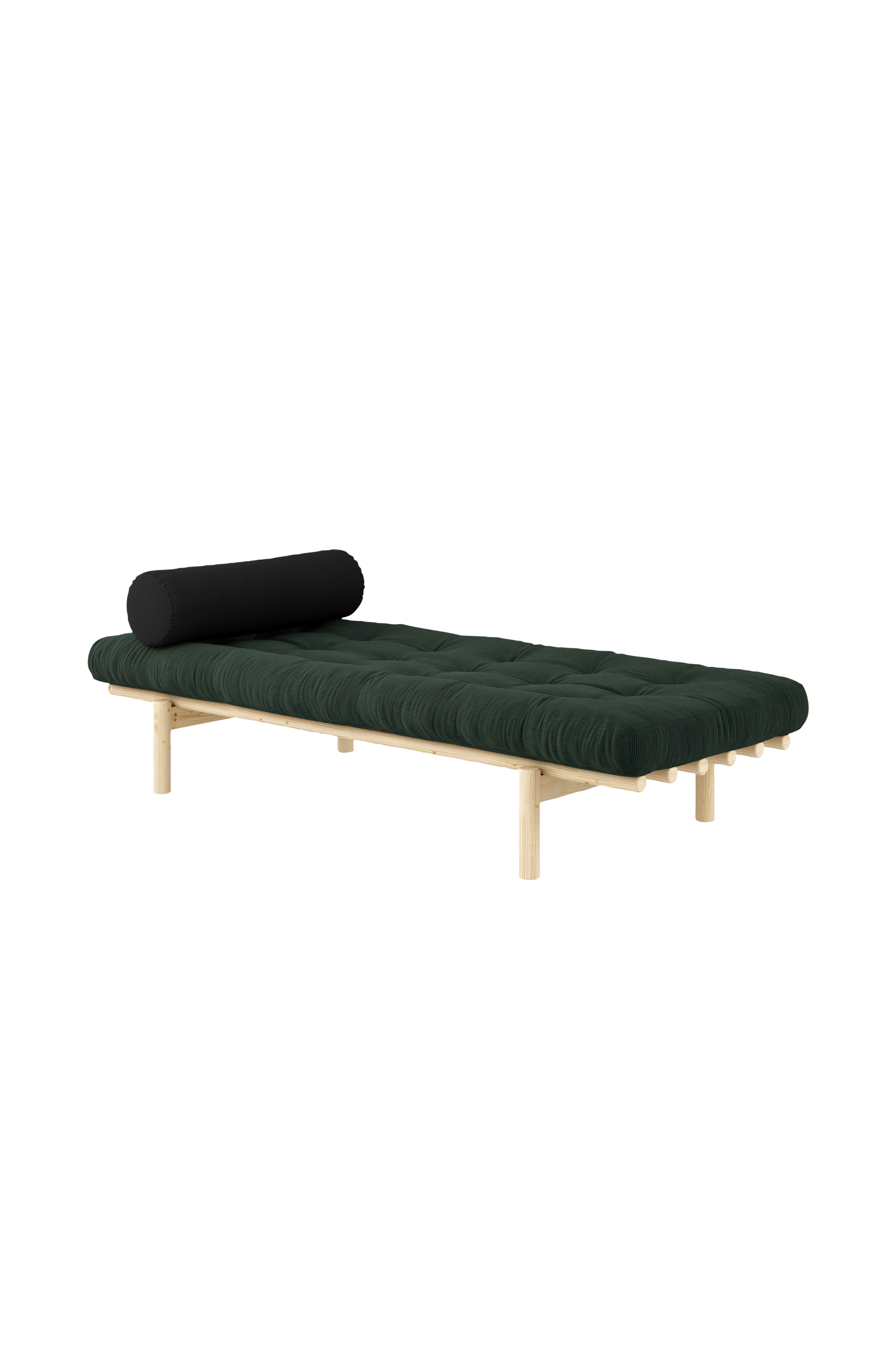 Next dagseng består av en elegant fururamme med en futonmadrass i kordfløyel og en pølle. Dagsengen utfordrer stilsansen din og kan plasseres i stuen, entreen, inntil en vegg, på soverommet eller hvor som helst ellers der du synes den passer.