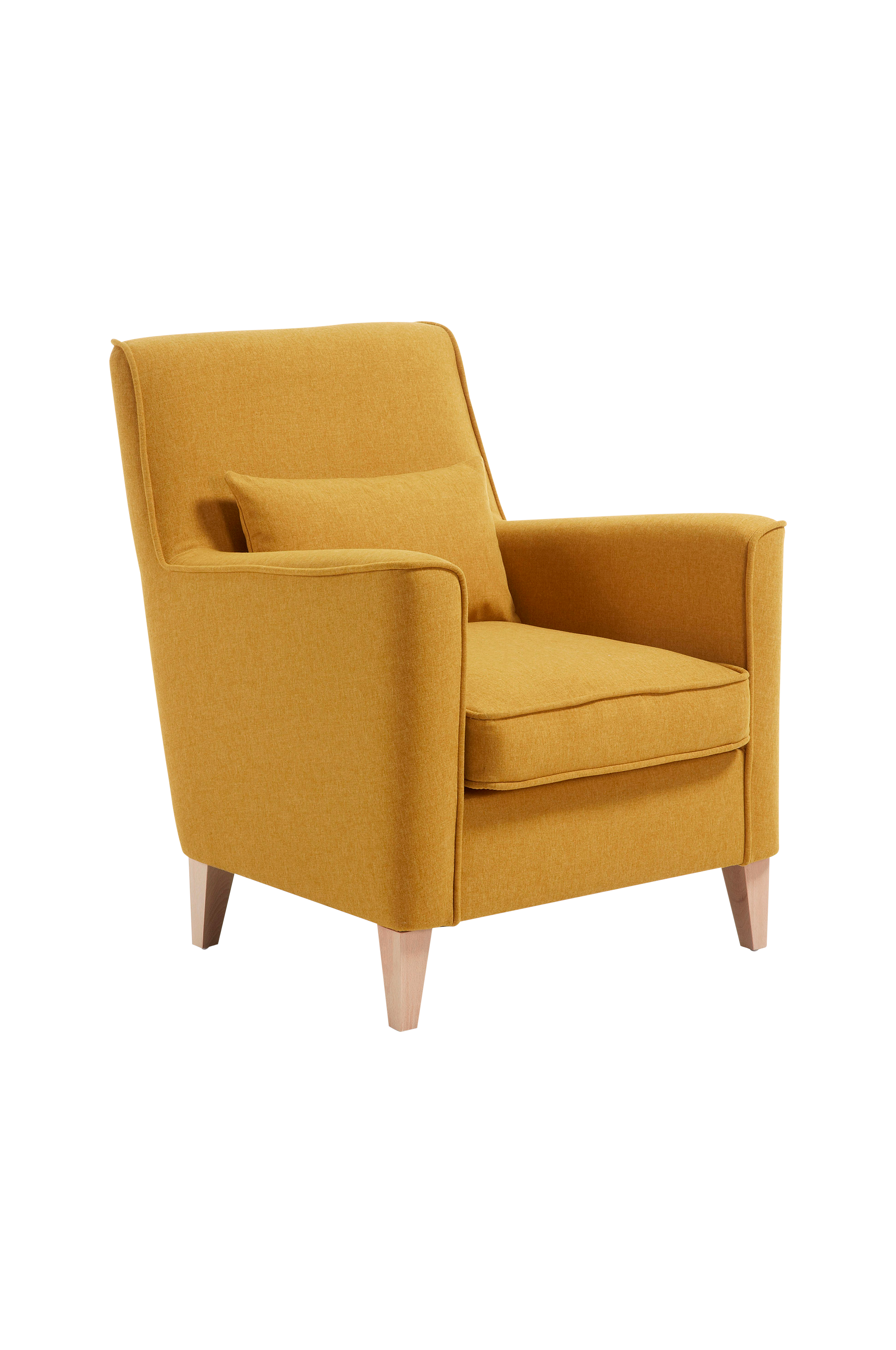 Armstol med stopp og antiflekkbehandlet stoff med Teflon®-belegg. Ben av naturfarget bøk. Pute medfølger.