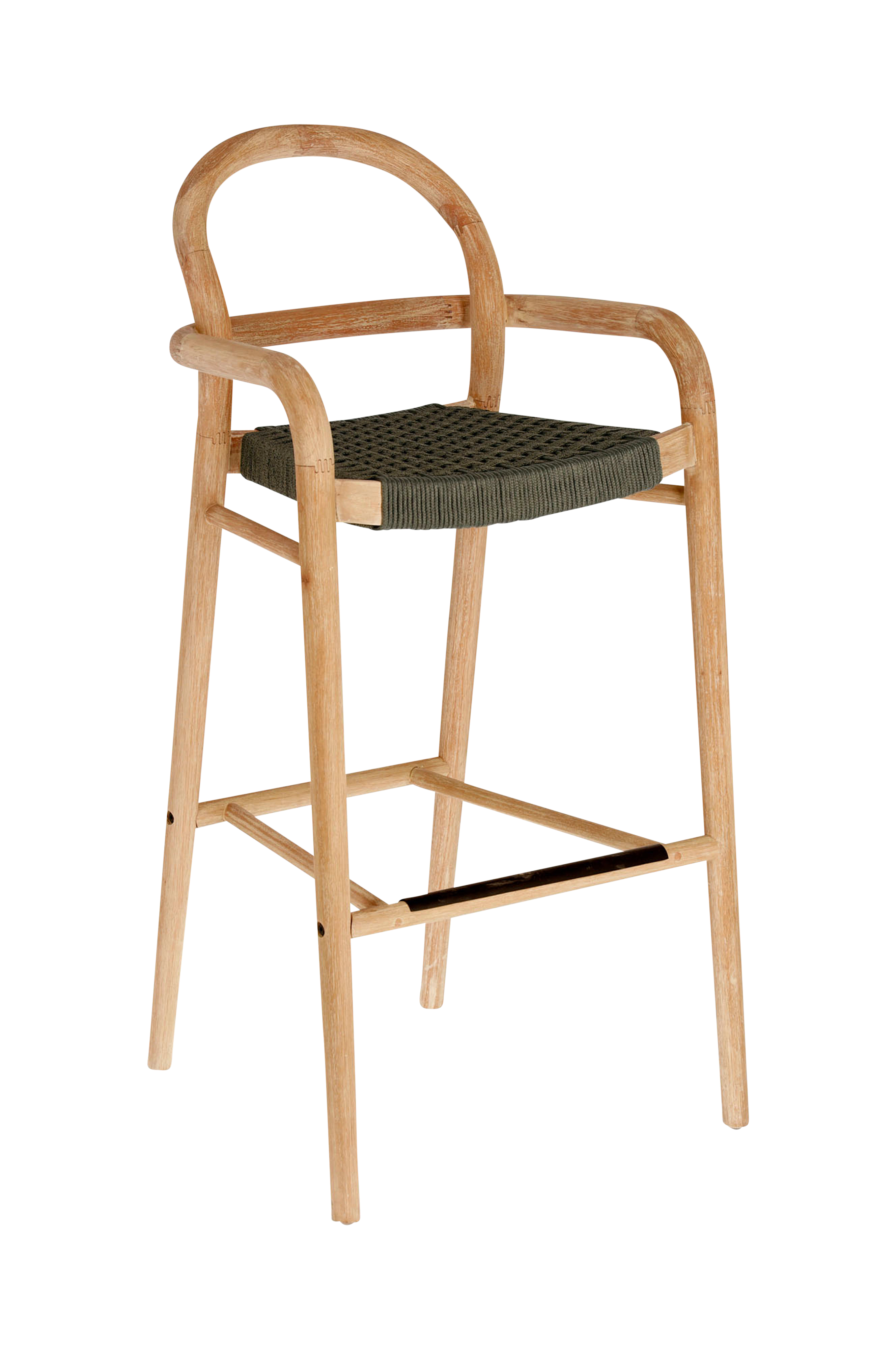 Carlos Guijarro har designet denne stolen, som er 110 cm høy, for Kave Home. Håndlaget av eukalyptustre i naturfarge. Hver stol har sitt eget mønster og spesielle nyanse siden den er laget av massivt tre, slik at hvert eksemplar er eksklusivt og unikt. Det er brukt flere manuelle teknikker, som f.eks. å forme stammen ved å bøye treet ved hjelp av damp. Deler er også håndvevd, og kombinerer runde og flate tau, noe som gjør den jevnere og mer stabil. Bredde: 54 cm. Dybde: 56 cm. Høyde: 110 cm.