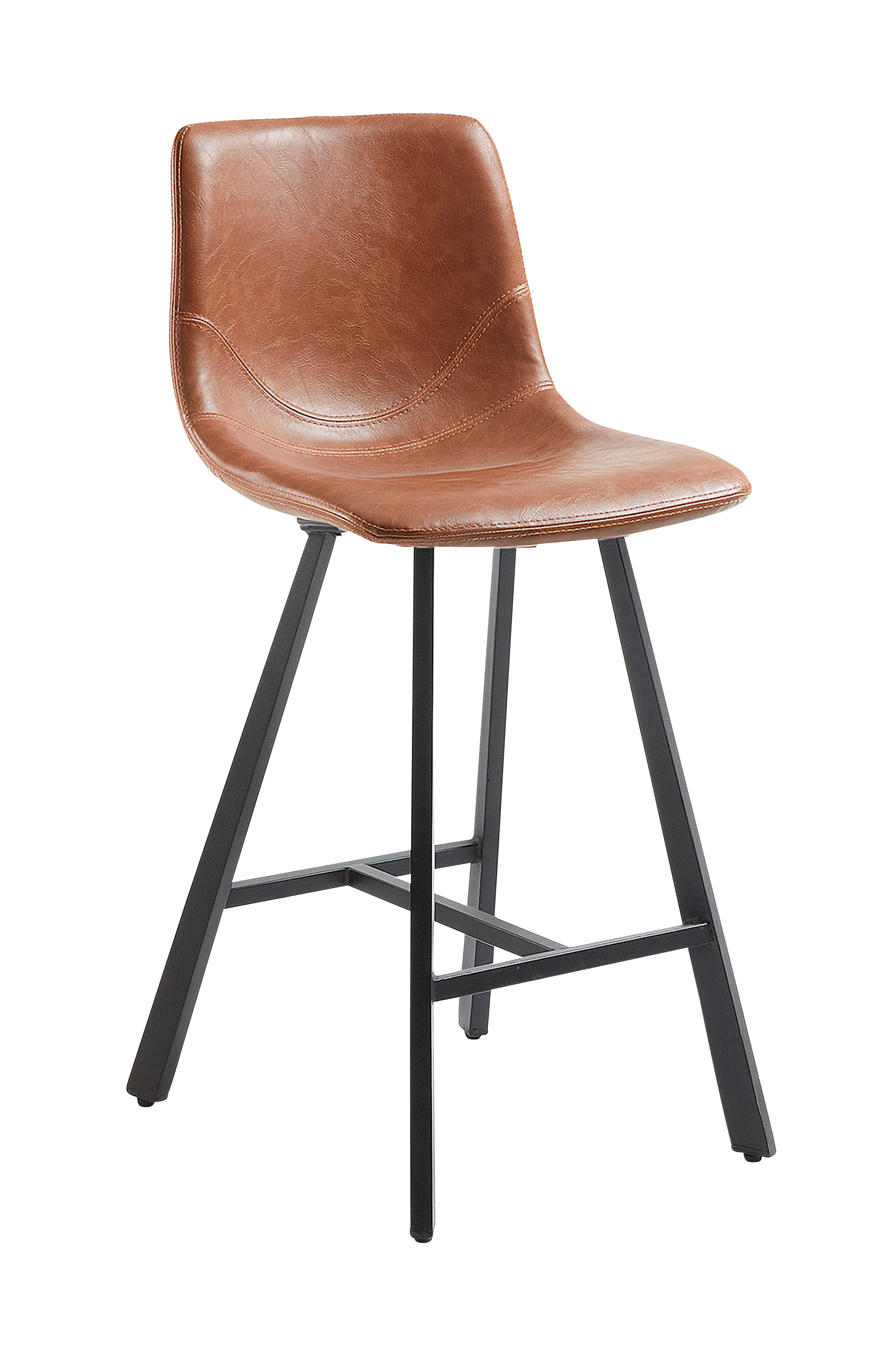 Barstol med stoppet sete og kunstskinn. Pulverlakkerte metallben. Høyde 92, dybde 49, bredde 39 cm. Sittehøyde 61, sittedybde 40 cm. Montert.