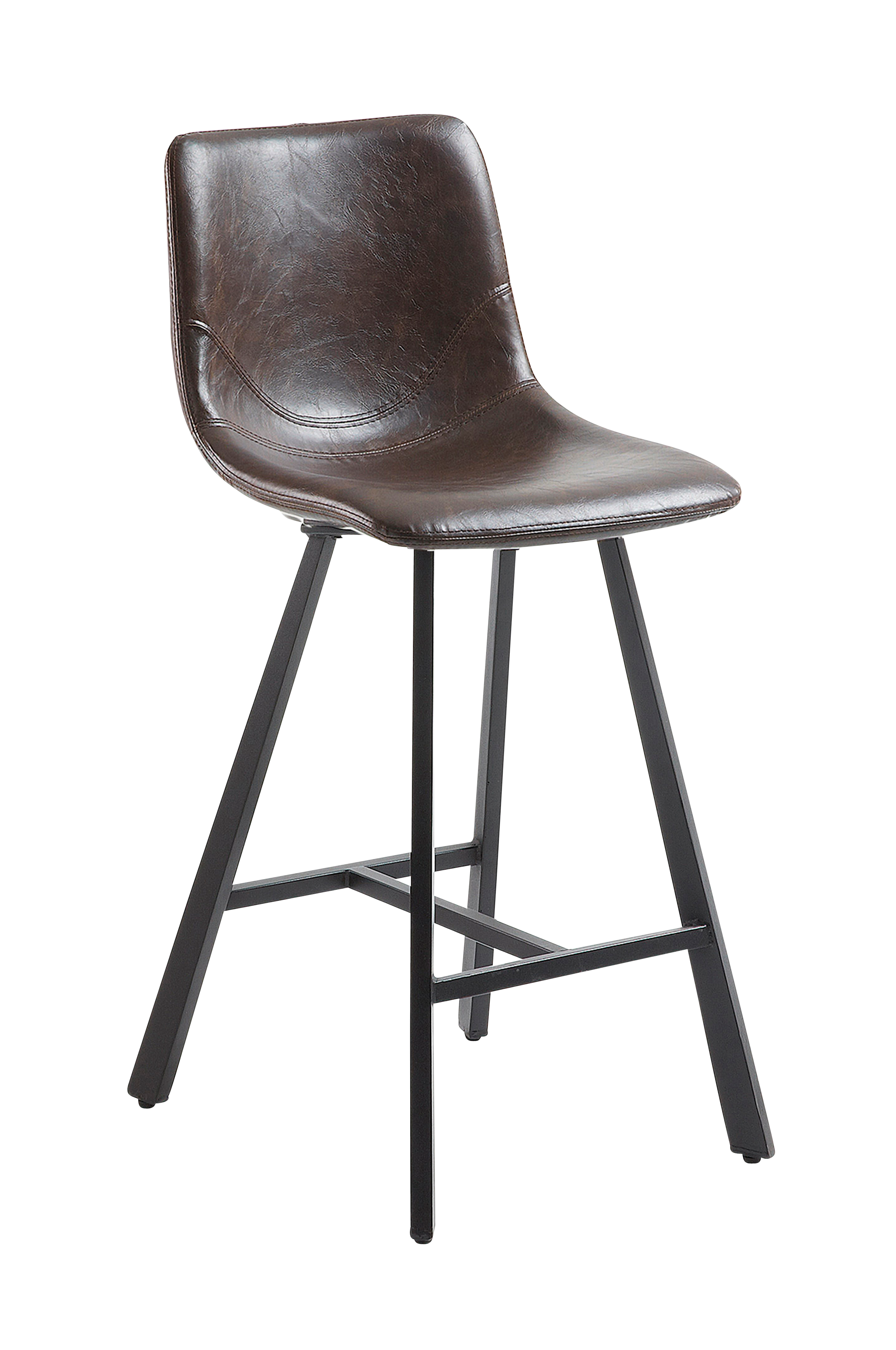 Barstol med stoppet sete og kunstskinn. Pulverlakkerte metallben. Høyde 92, dybde 49, bredde 39 cm. Sittehøyde 61, sittedybde 40 cm. Montert.