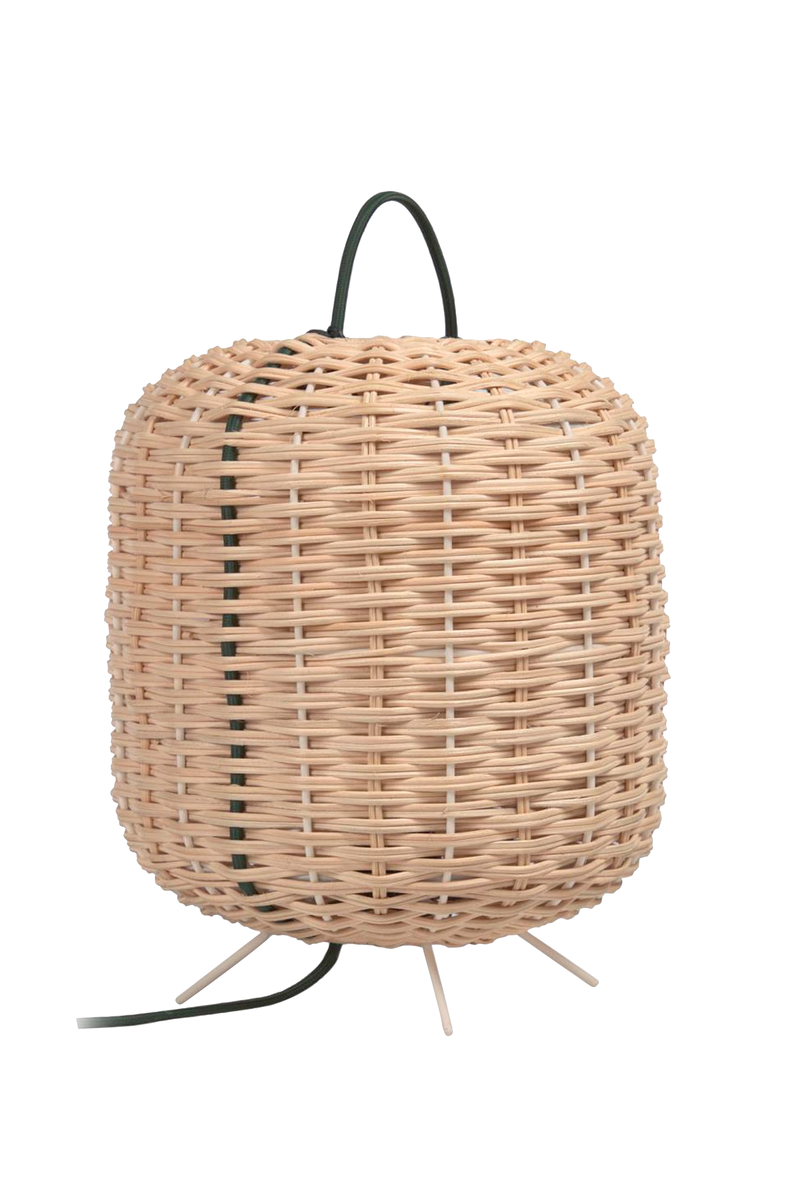 Lumisa bordlampe av rotting med metallstamme.
