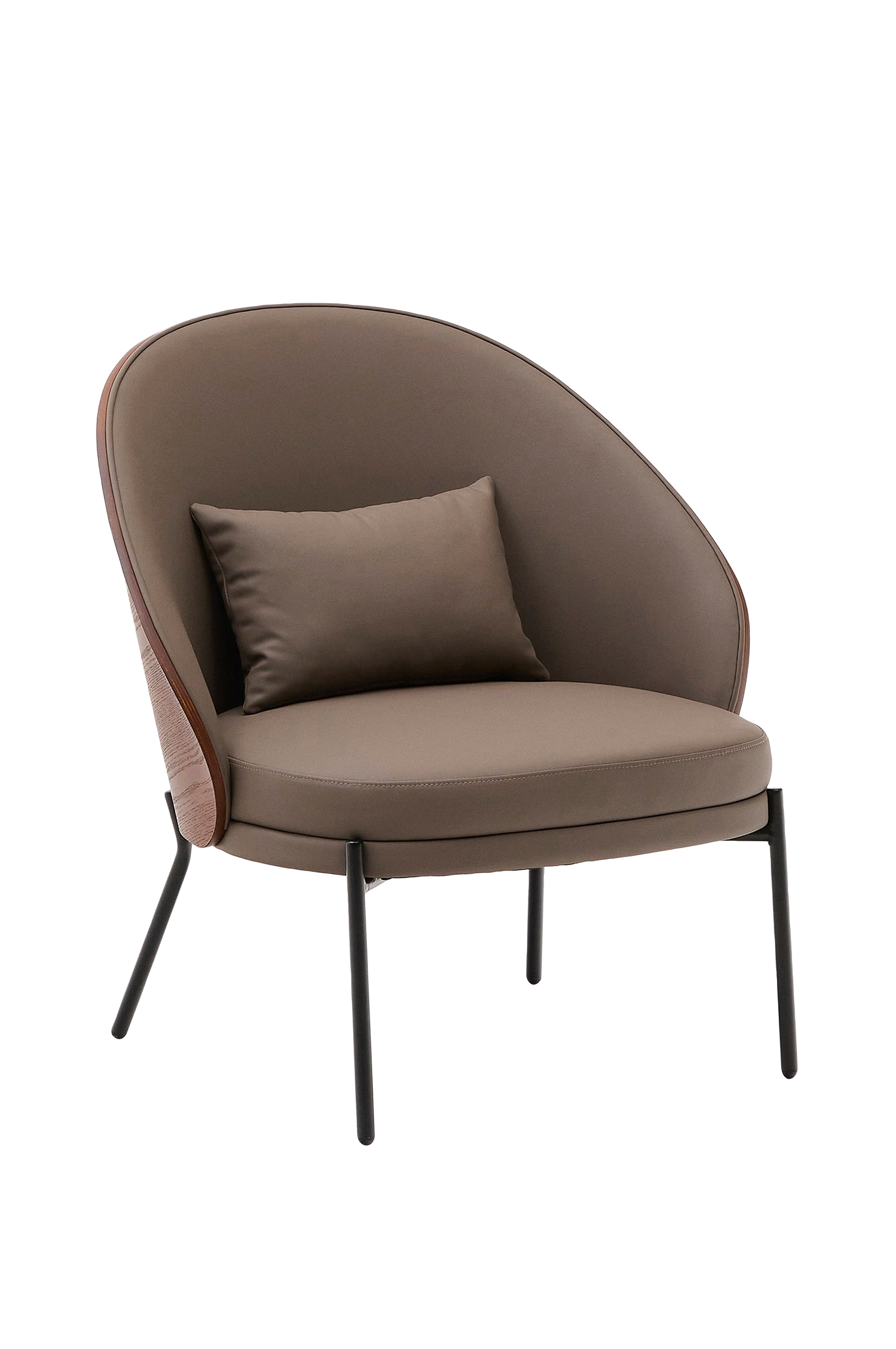 Kave Home Eamy lenestol i brunt kunstskinn, askefiner med valnøtt og svart metallfinish