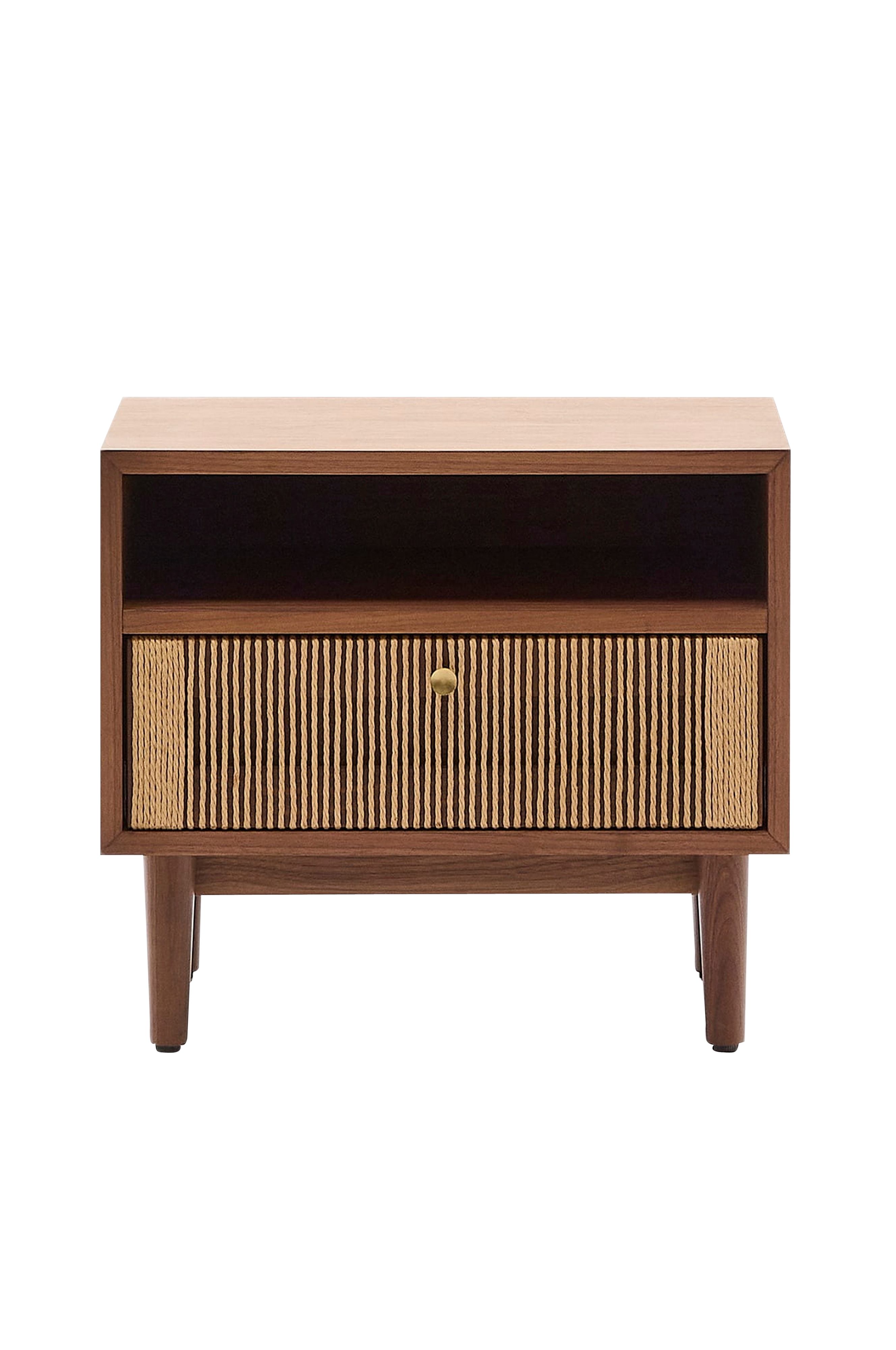 Kave Home Elan nattbord i finér og massiv valnøtt med snor 51x45 cm 100 Fsc
