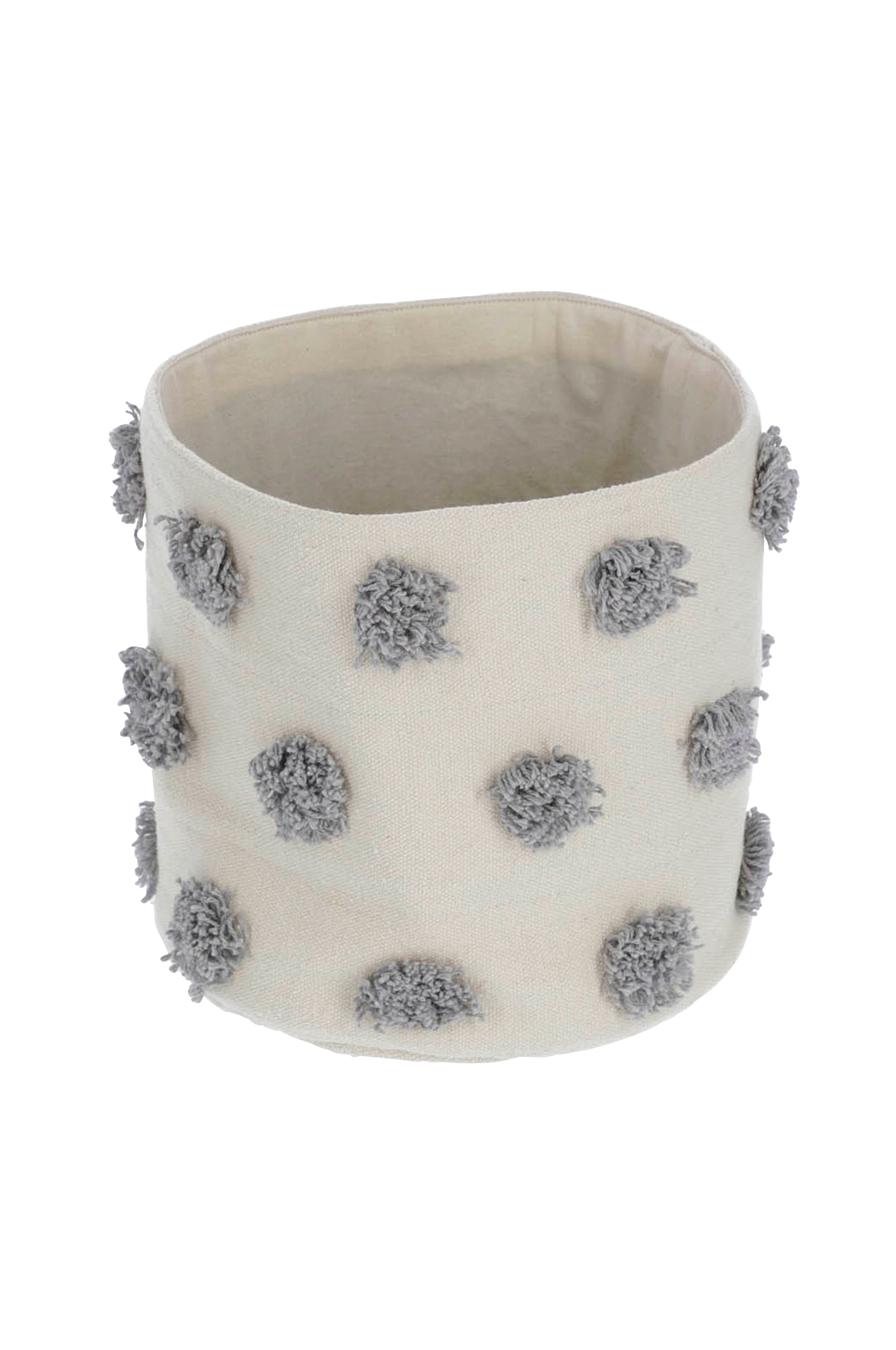 Kurv av ren bomull, perfekt for barnas leker eller skittentøyet. De broderte detaljene gjør den like dekorativ som praktisk. Diameter 22 cm.