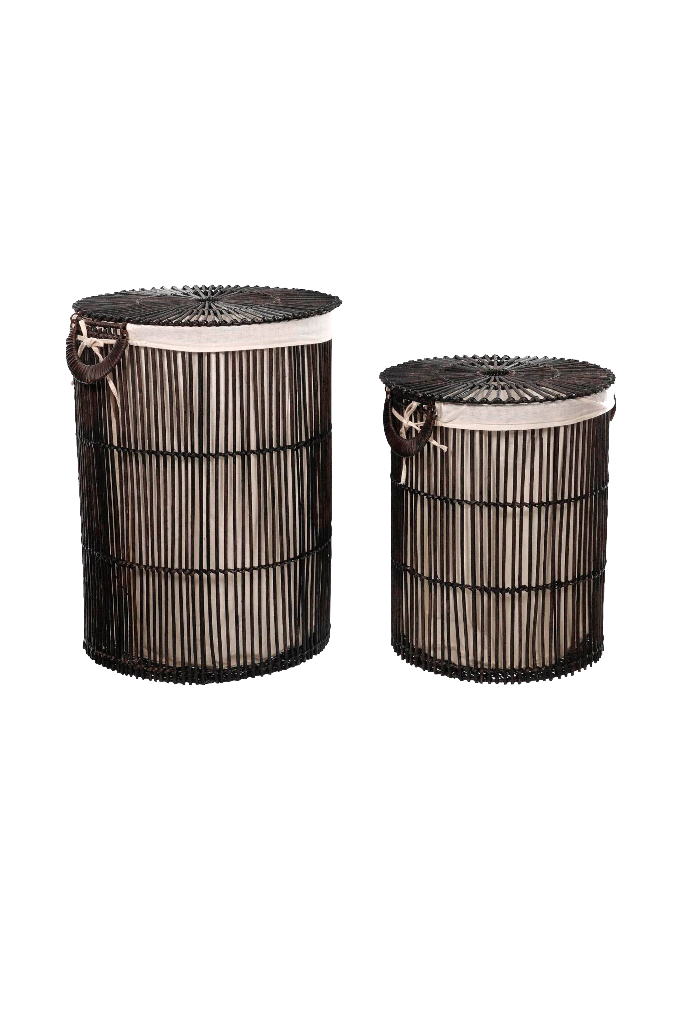 Skittentøyskurvene Fayna er fremstilte av håndvevd rotting, og viser at selv de enkleste tingene kan tilføre stil. De er perfekte på badet, eller for å holde orden på puter og pledd ved siden av sofaen. Mål: Stor kurv Ø 40, høyde 46 cm. Liten kurv Ø 35, høyde 40 cm.
