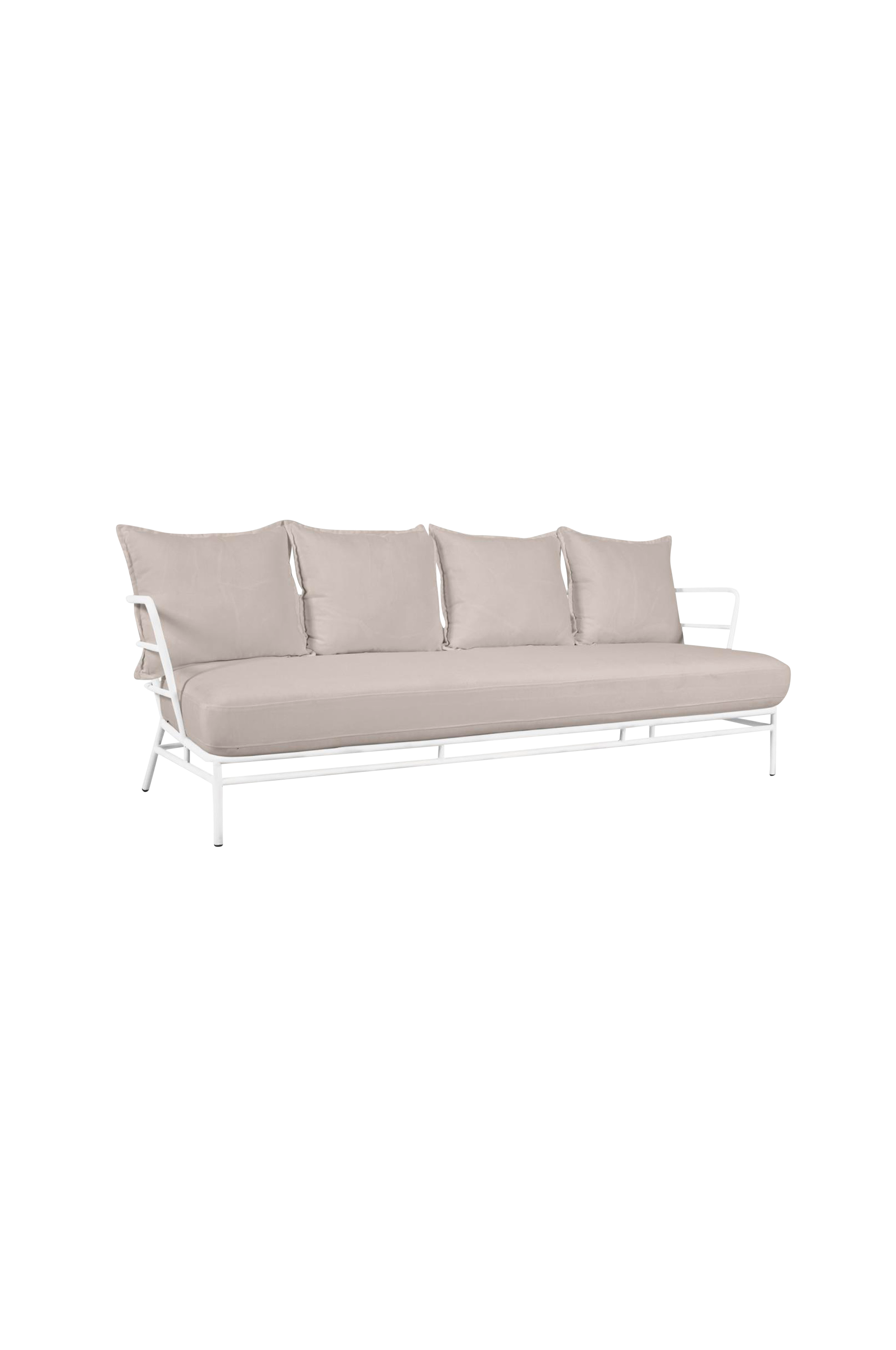 Stål setter tonen for denne sofaen som kombinerer komfort og stil. Den lette designen gir uteplassen under tak en lys, romslig følelse, og inviterer til total avslapping.