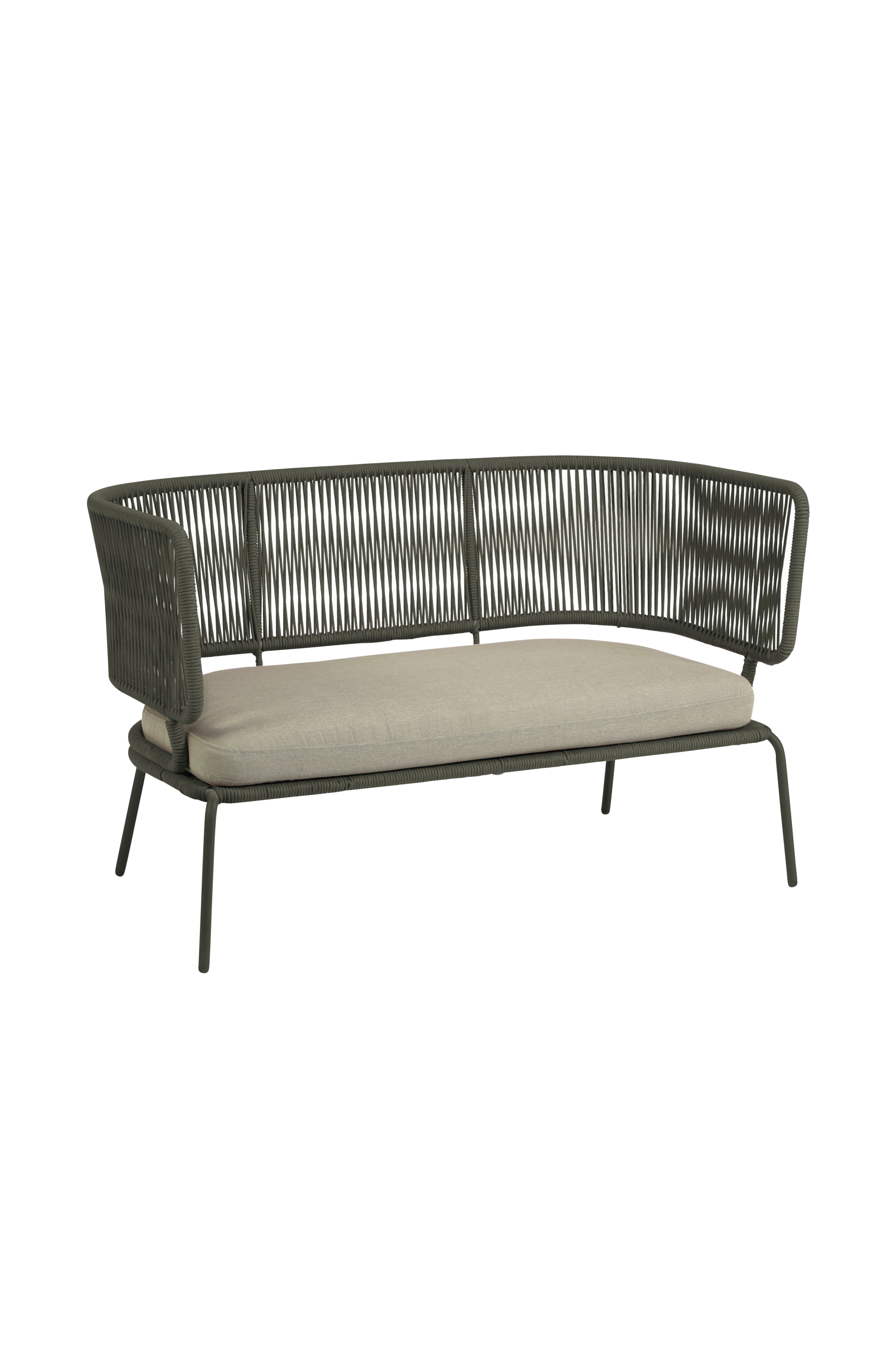 Nadin sofa 2-seter med tau og galvanisert stål. Puter inkludert. Innendørs under tak. Leveres montert.