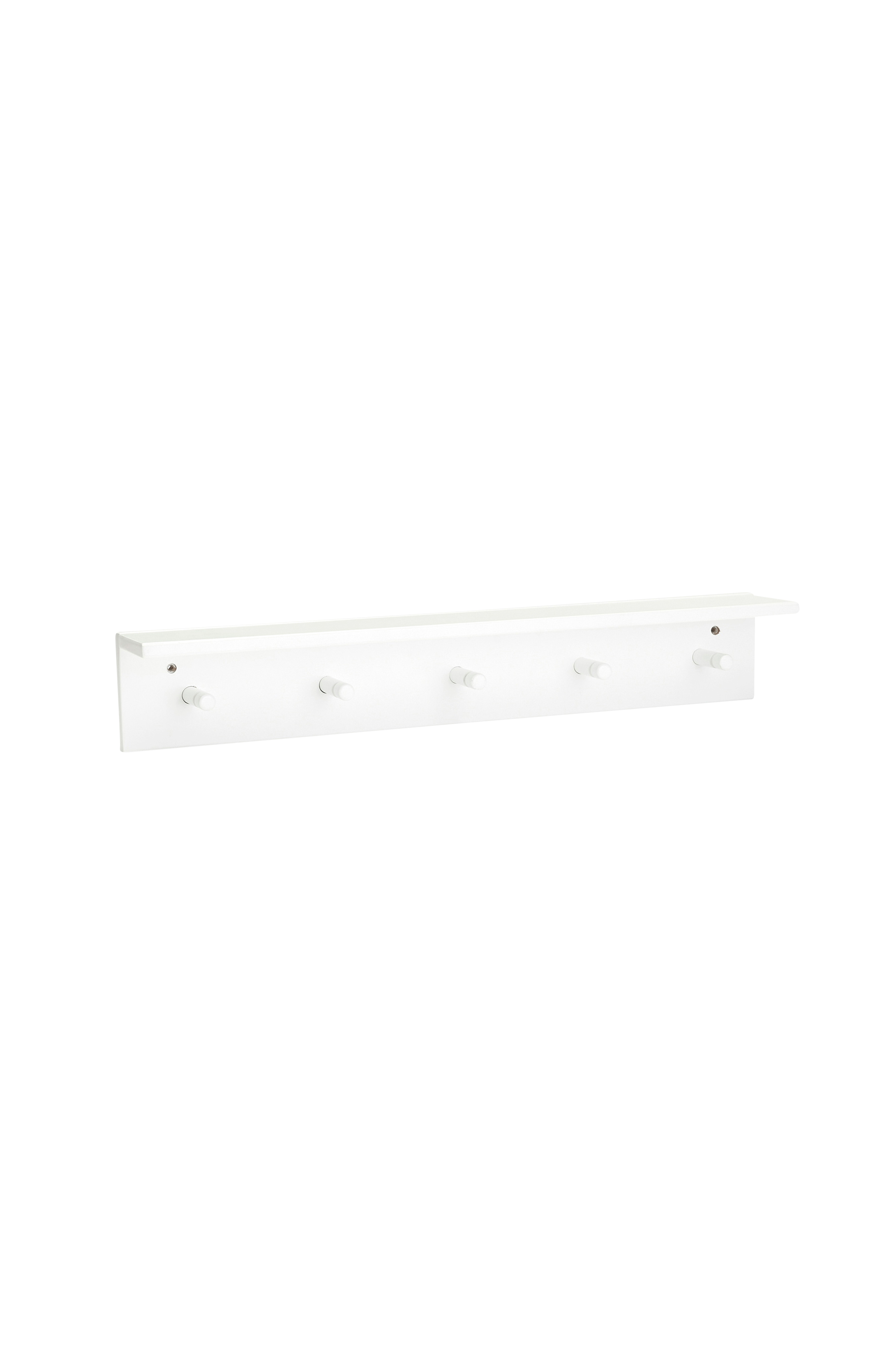 - Materiale: Hylle: MDF. Knagger: Poppel