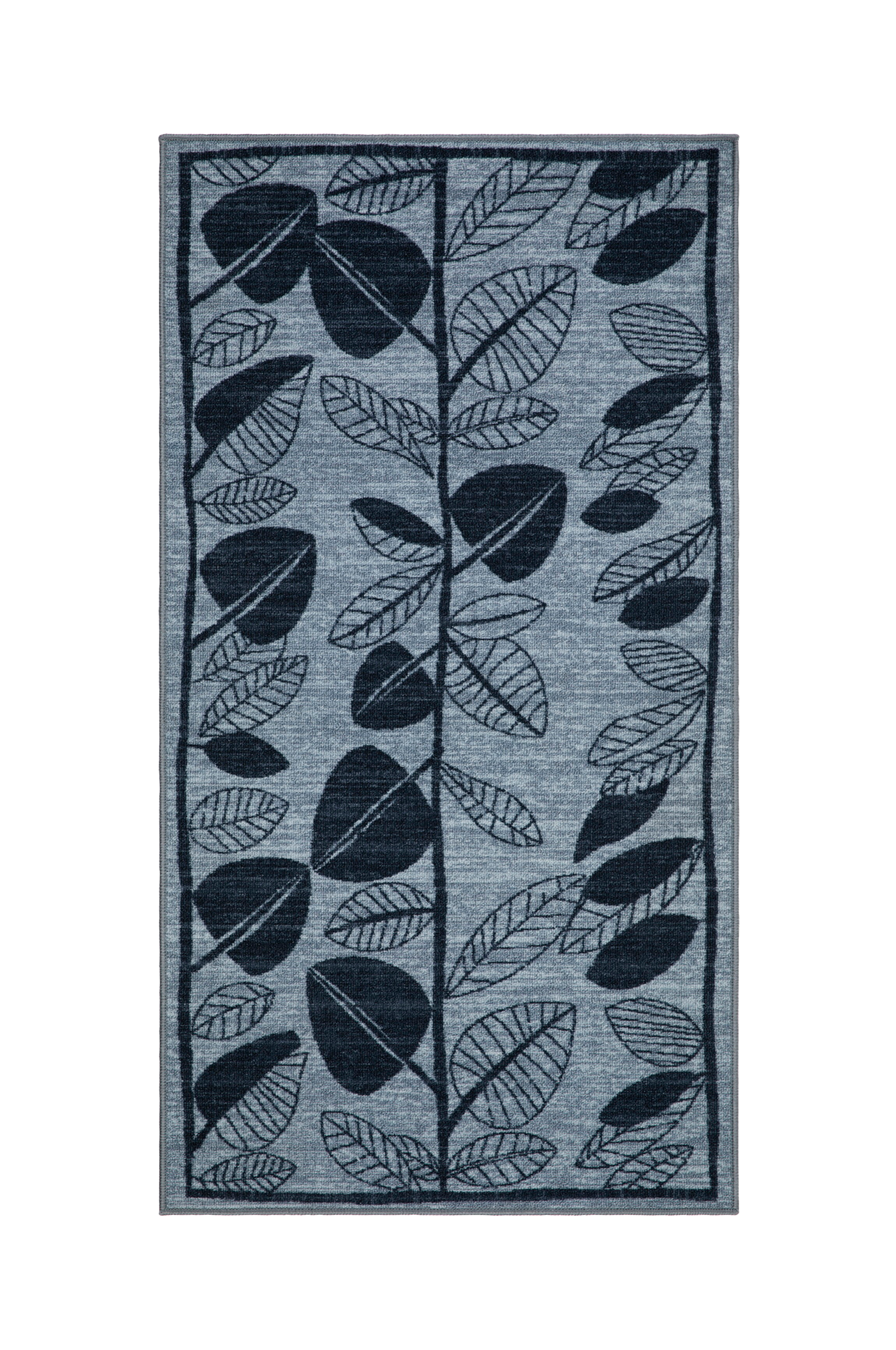 Löv er et gummiert teppe som ligger trygt på plass. Midten av teppet har et litt melert utseende. Bordet rundt teppet er dekorert med et bladmønster. Den sklisikre baksiden i lateks gjør det også skånsomt mot gulvet. Uten lang luv passer det godt overalt i hjemmet. Innbydende og koselig både i gangen og på kjøkkenet.