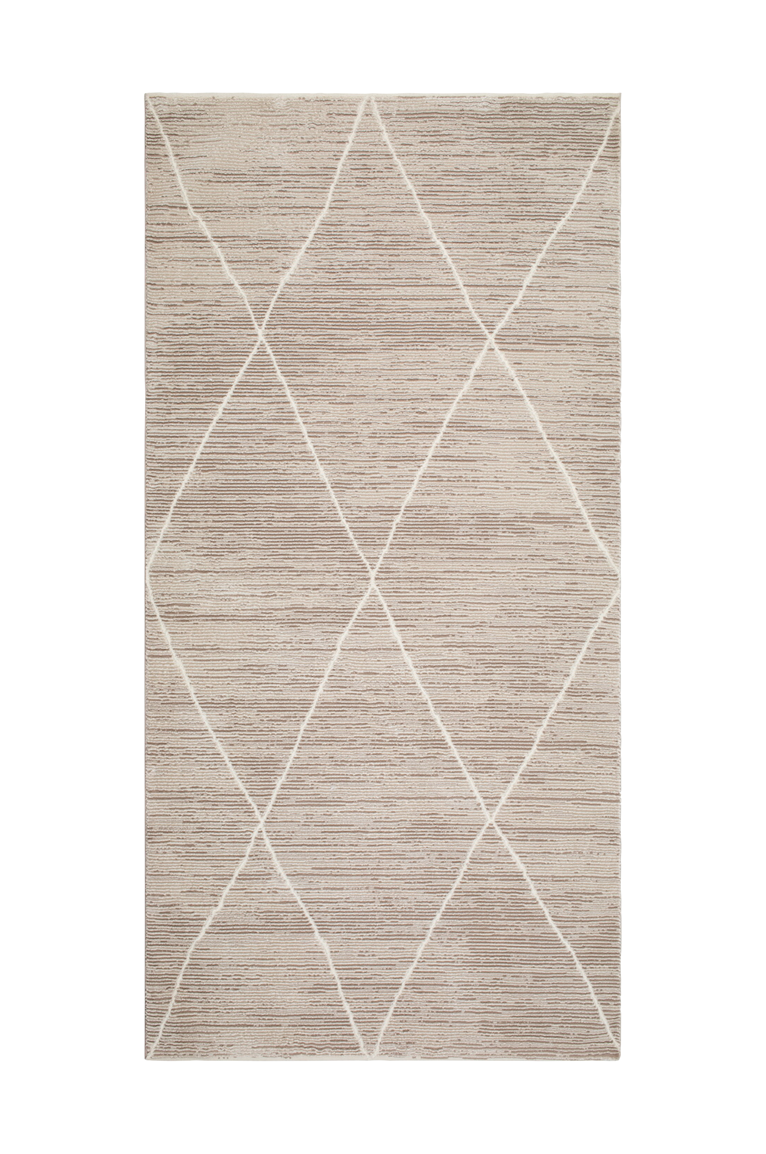 Stilrent mønster og farger gjør den til et godt valg. Den tette polyesterluggen er vevd i high/low, noe som gir mønsteret liv og effekt. Et teppe som takket være sin diskre design gjør det morsomt å innrede, og passer like fint under sofabordet til å hvile føttene på etter en lang arbeidsdag som å ta morgenen første skritt på på soverommet.