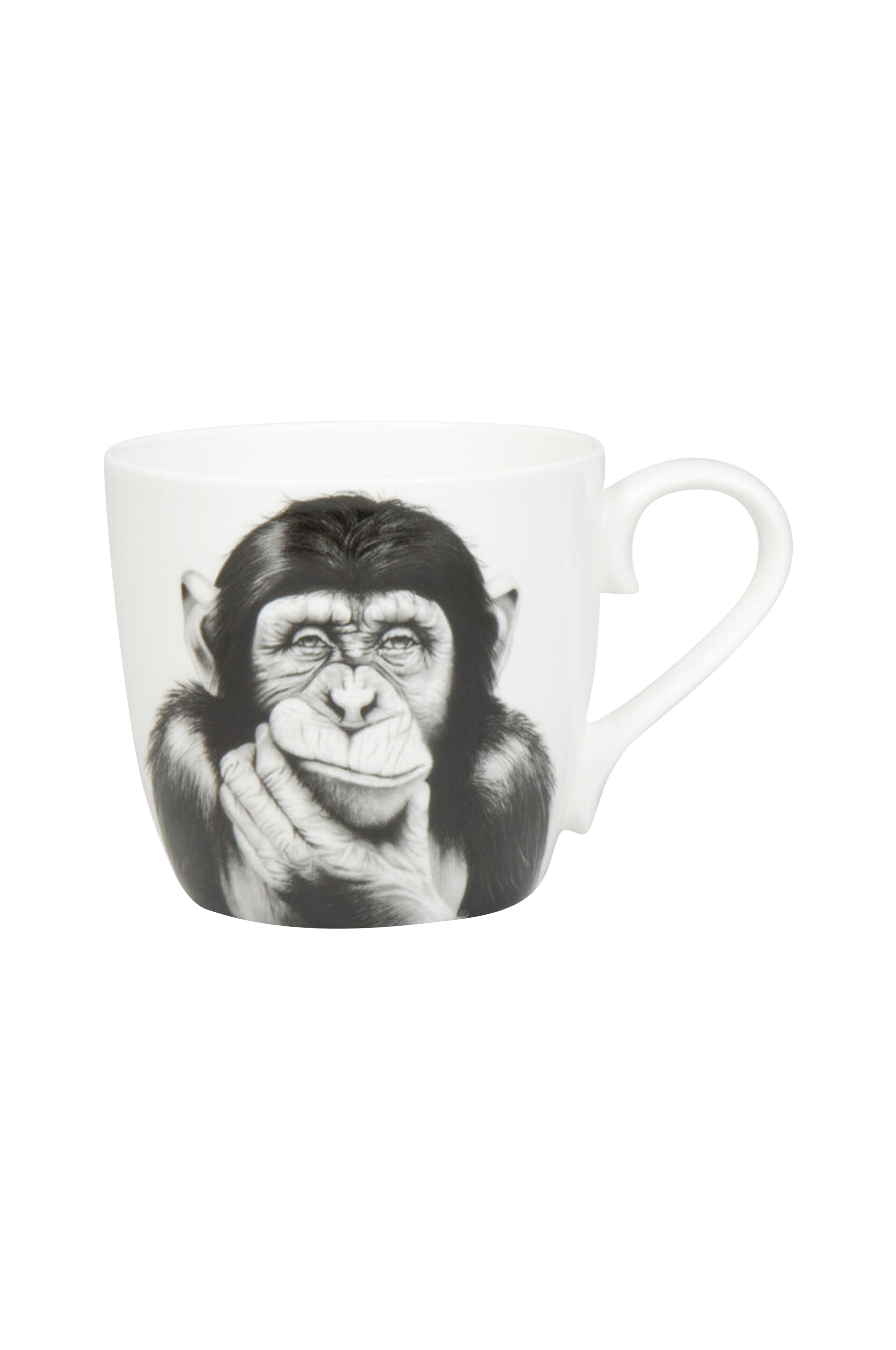 En tenkende ape ser på deg fra kruset med et dypt blikk. Hva er det apen tenker på? Øynene hans er alvorlige, og kanskje tenker han på noe veldig viktig, kanskje universets hemmeligheter? Krusets blyantlignende design står i kontrast til det sarte hvite benporselenkruset og skaper et unikt bilde. Kruset med den tenkende apen er mer enn bare en beholder for kaffe eller te - det er et kunstverk som stimulerer både sinn og sjel. Det minner oss om at det finnes skjønnhet og inspirasjon i de vanlige øyeblikkene i livet.