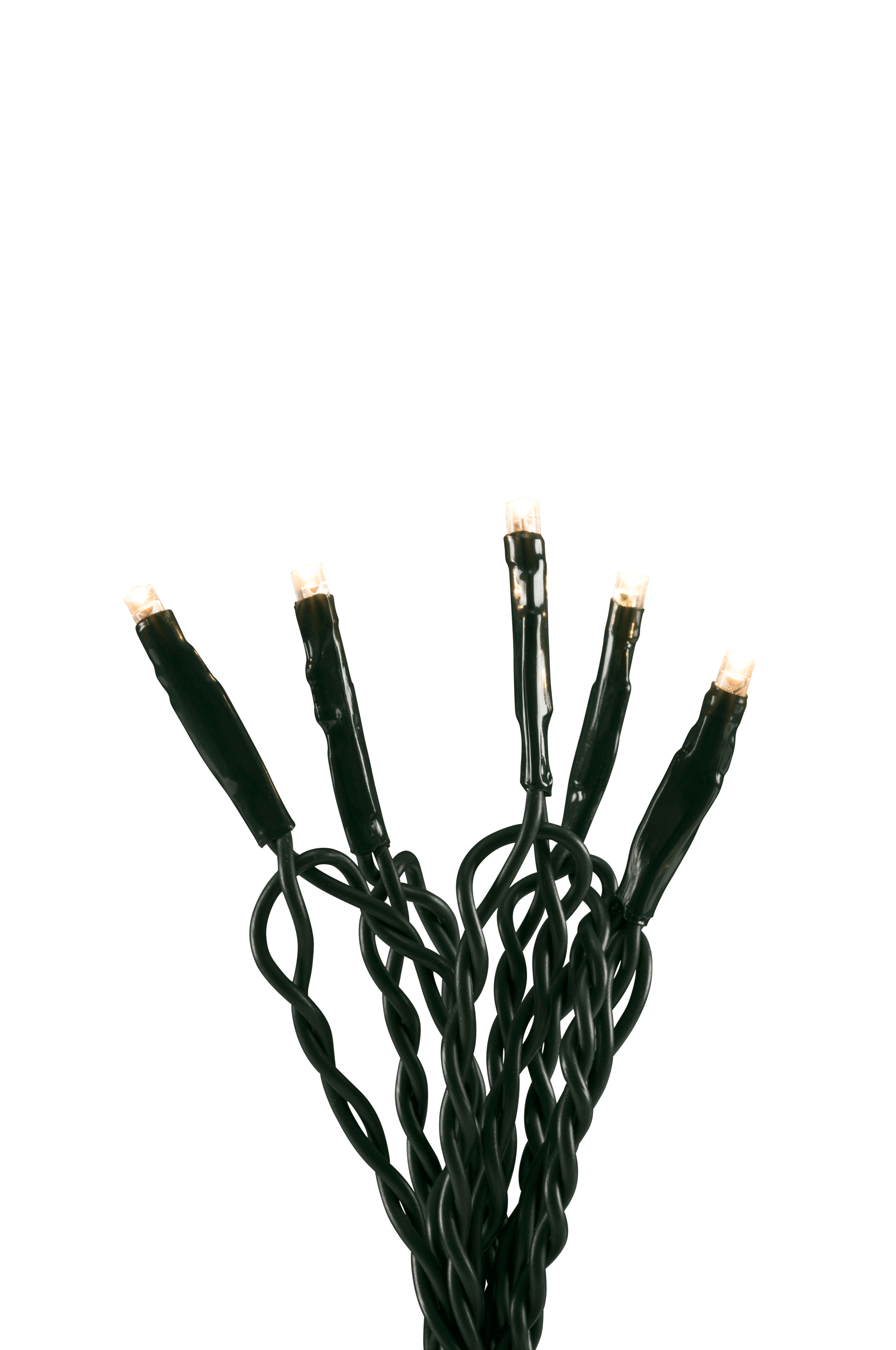 Lyskæde med 50 varmhvite lysdioder for innendørs dekorasjon. Den mørkegrønne kabelen er 343 cm lang med en 300 cm lang tilkoblingskabel. Drives av en 24 V transformator.