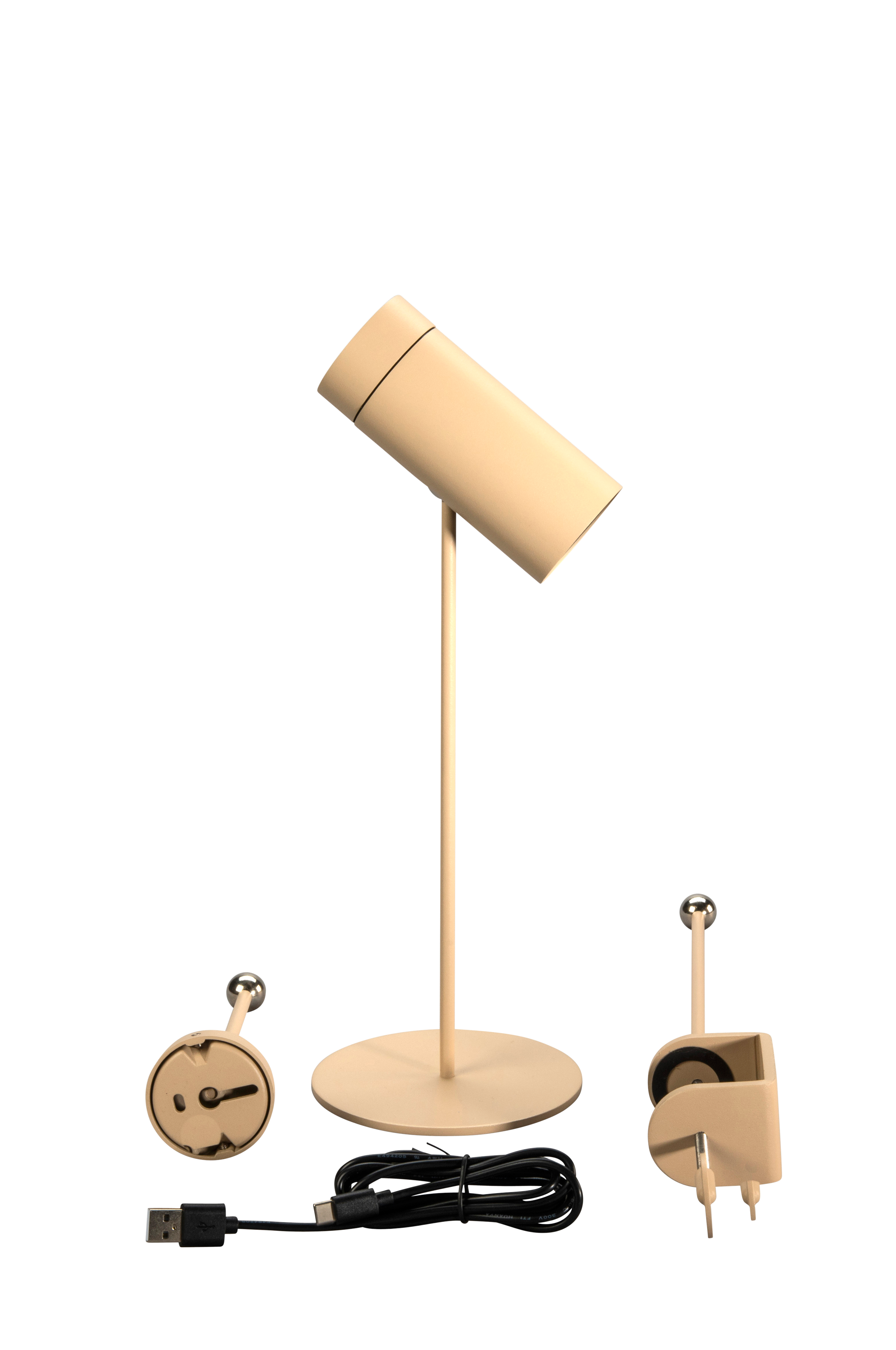 Multi er en bærbar lampe med tre ulike plasseringsalternativer: vegg, hylle og bord. Lyskilden kan enkelt flyttes mellom posisjonene ved hjelp av et magnetisk feste. Dimbar med en fargetemperatur mellom 2200k og 3000k. Lader via usb og har en batterilevetid på ca. 9 timer ved full lysstyrke. Lakkert aluminium. Høyde 30 cm.