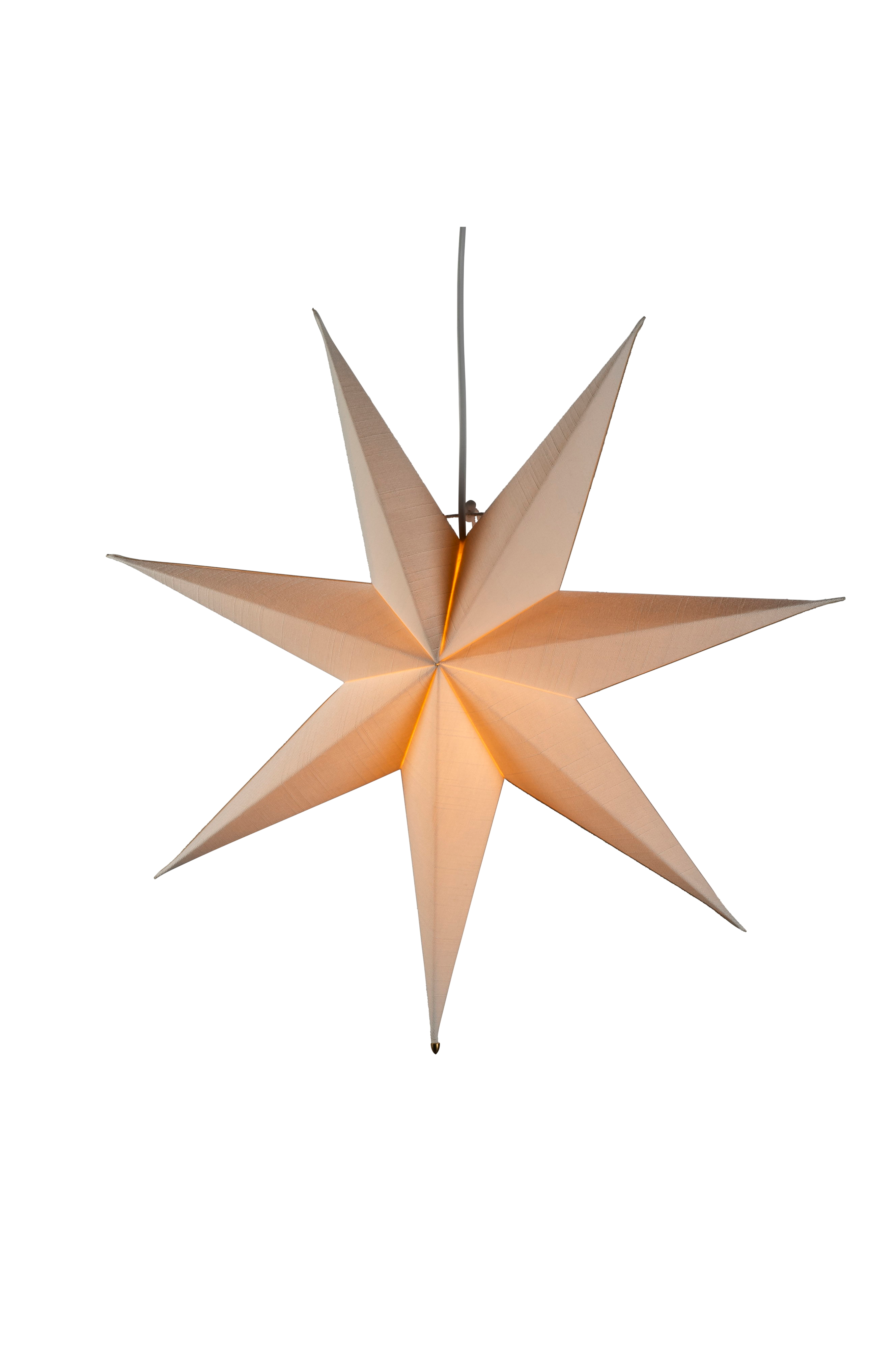 En klassisk adventsstjerne laget av hvitt papir med en myk, tekstillignende tekstur. Leveres med et praktisk ledningssett og en hvit kabel med bryter - en vakker dekorasjon som gir en koselig og festlig julestemning i ethvert rom. Diameter: 78 cm.