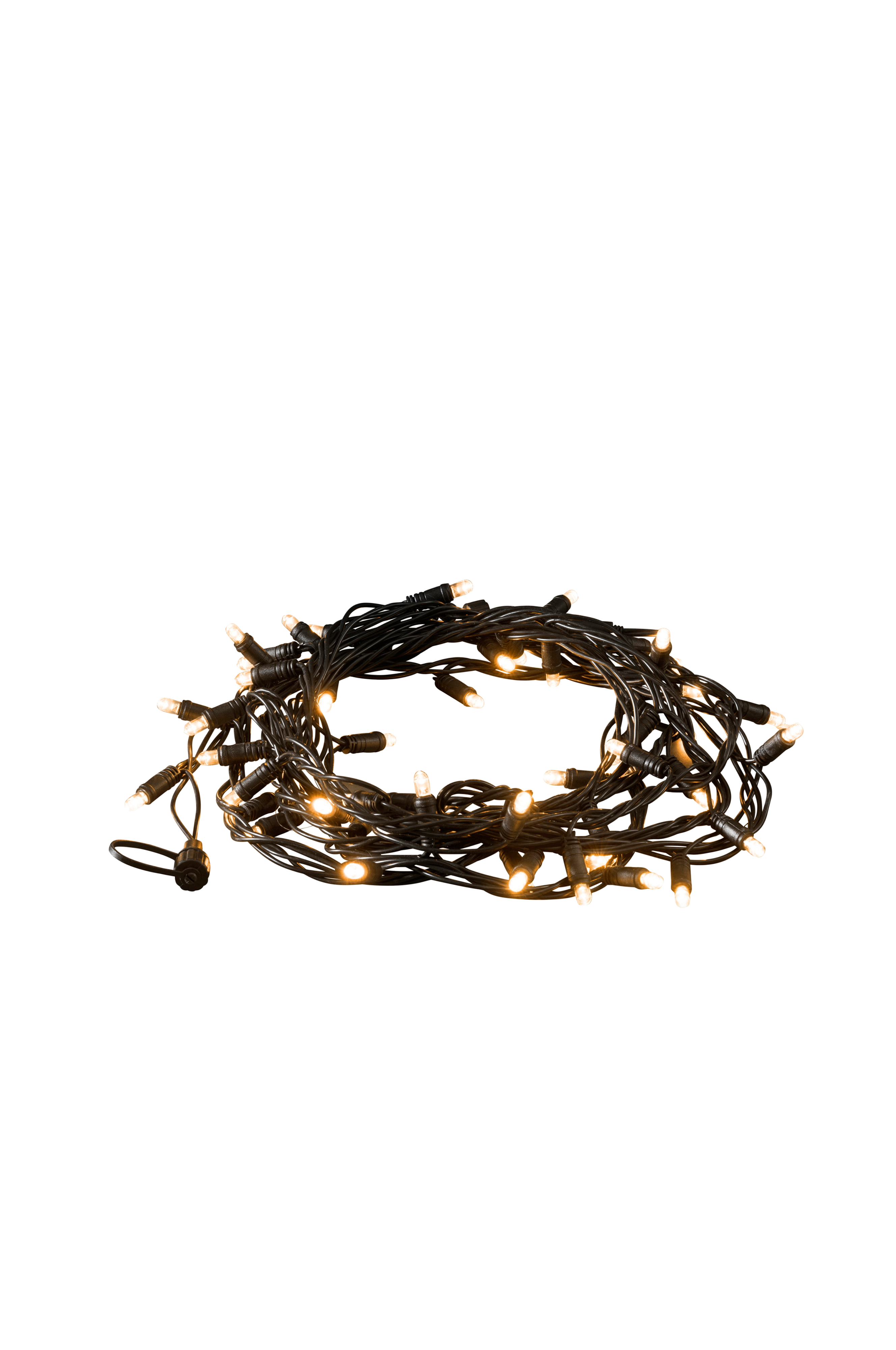 Startsett med 100 amberfargede LED-lys til utendørs bruk. Robust soft cable. Drives av en 31 V transformator med innebygd dimmer. Tilkoblingsledningen er 10,20 m.