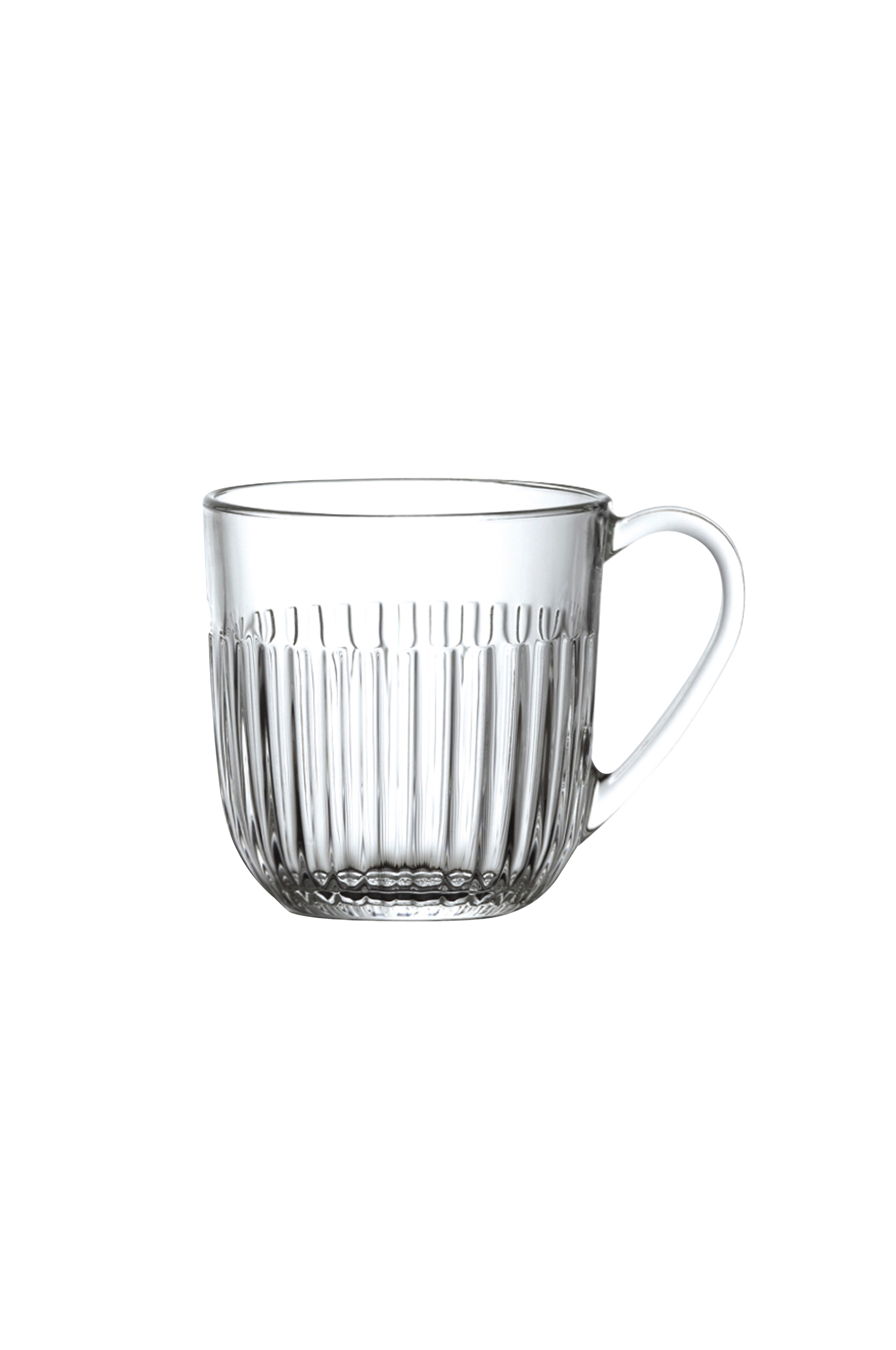 Ouessant-glass med øre, sett med 6 stk. fra la rochère. Disse ribbede glassene med håndtak gir et elegant, men likevel enkelt inntrykk. Med en kapasitet på 27 cl er de ideelle til morgendrinken eller kaffedrinken. Ouessant-serien er inspirert av bretonske kanoer, og fanger havets voldsomme bølger med sine ribbede linjer som gir glasset en skinnende effekt, og kombinerer enkelhet med eleganse for både uformelle og festlige anledninger.