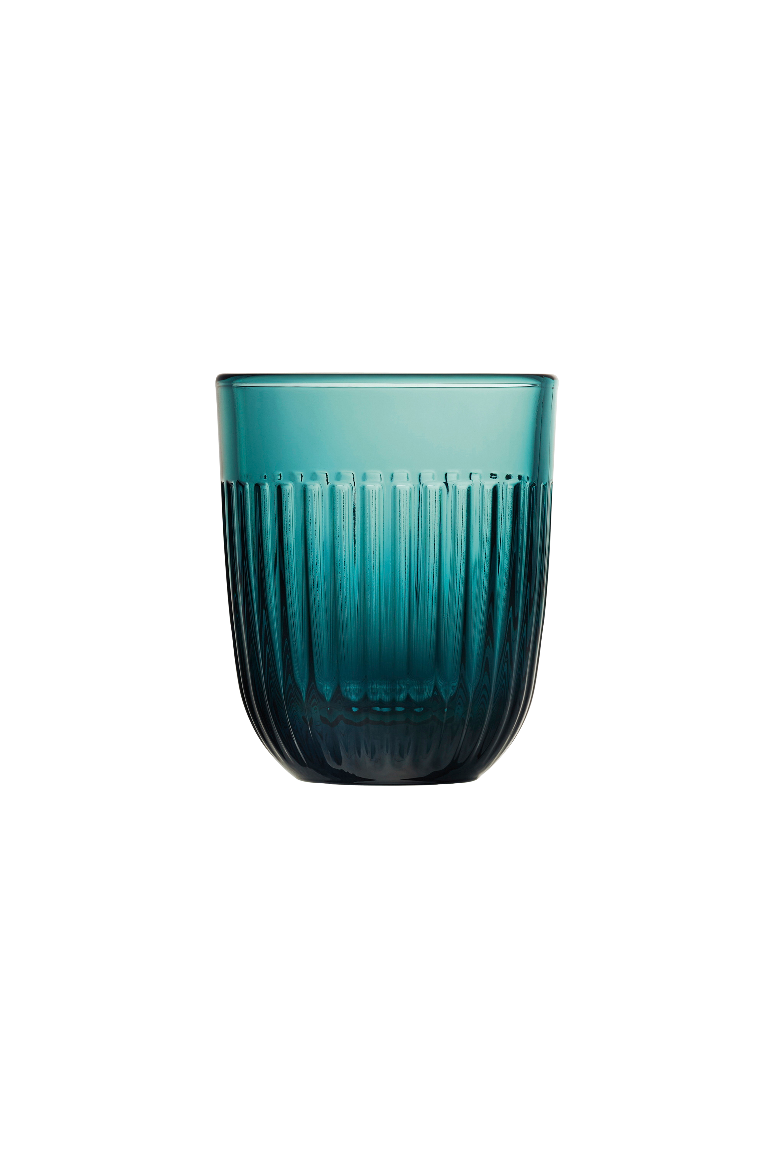 Ouessant mørkeblått vannglass, sett med 6 stk. fra franske la rochère. Ribbede glass som gir et elegant, men likevel enkelt inntrykk. De rommer 29 cl og er perfekte til kalde drikker som vann, brus og juice. Ouessant er inspirert av bretonske kanoer og gjenspeiler havets ville bølger. Den riflede designen gir glasset en unik glans. Denne kolleksjonen tilfører eleganse og enkelhet til ethvert bord, enten det er til frokost eller en spesiell sammenkomst.