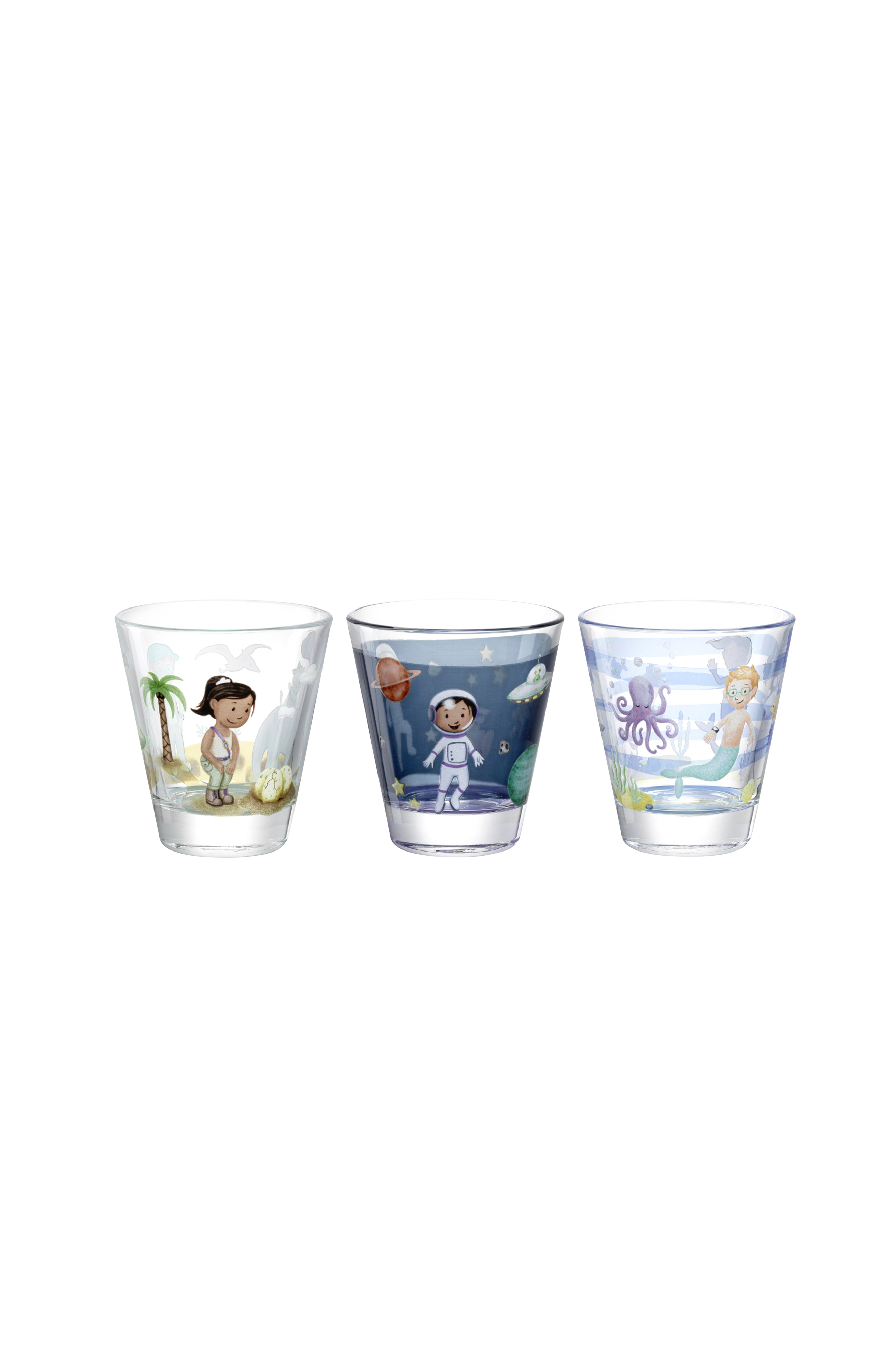 Bambini avventura Drikkeglass i 6-pakning til barna med morsomme motiver. Det praktiske drikkeglasset tåler oppvaskmaskin og er derfor perfekt til hverdagsbruk så vel som til barneselskap. En flott gaveidé som kommer i pakker med 6 stk. Volum: 21,5 cl Mål: h10 / d9 cm Materiale: glass Tåler oppvaskmaskin: ja
