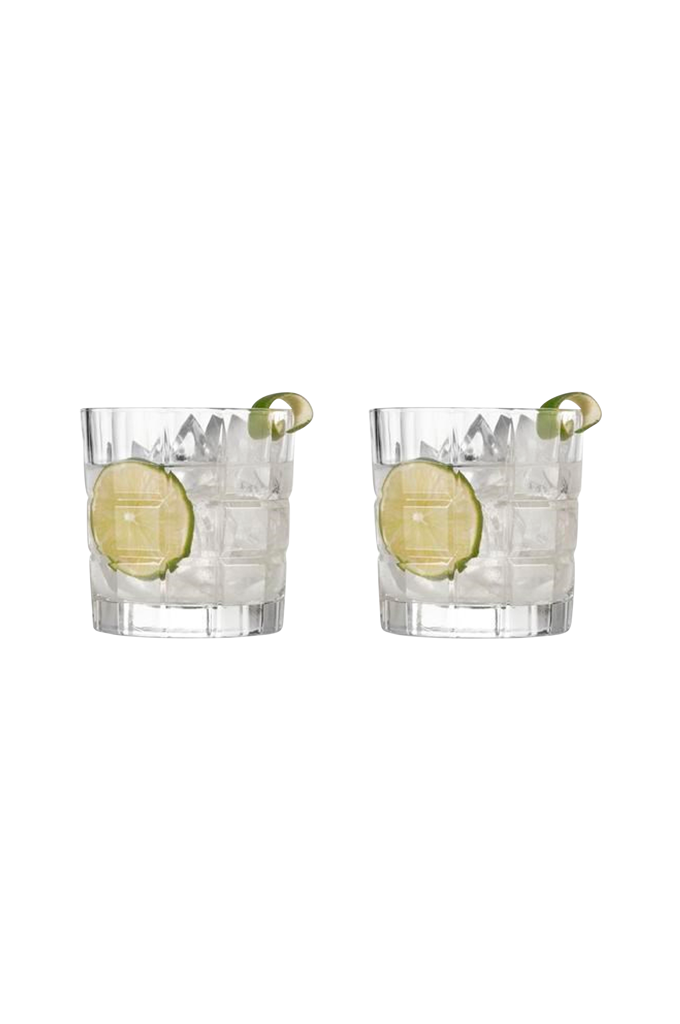 Lave ginglass fra glassmesterne Leonardo, sett med to glass. Glassene har en strålende glans, og fasongen ligger perfekt i hånden og fremhever drikkens smak.