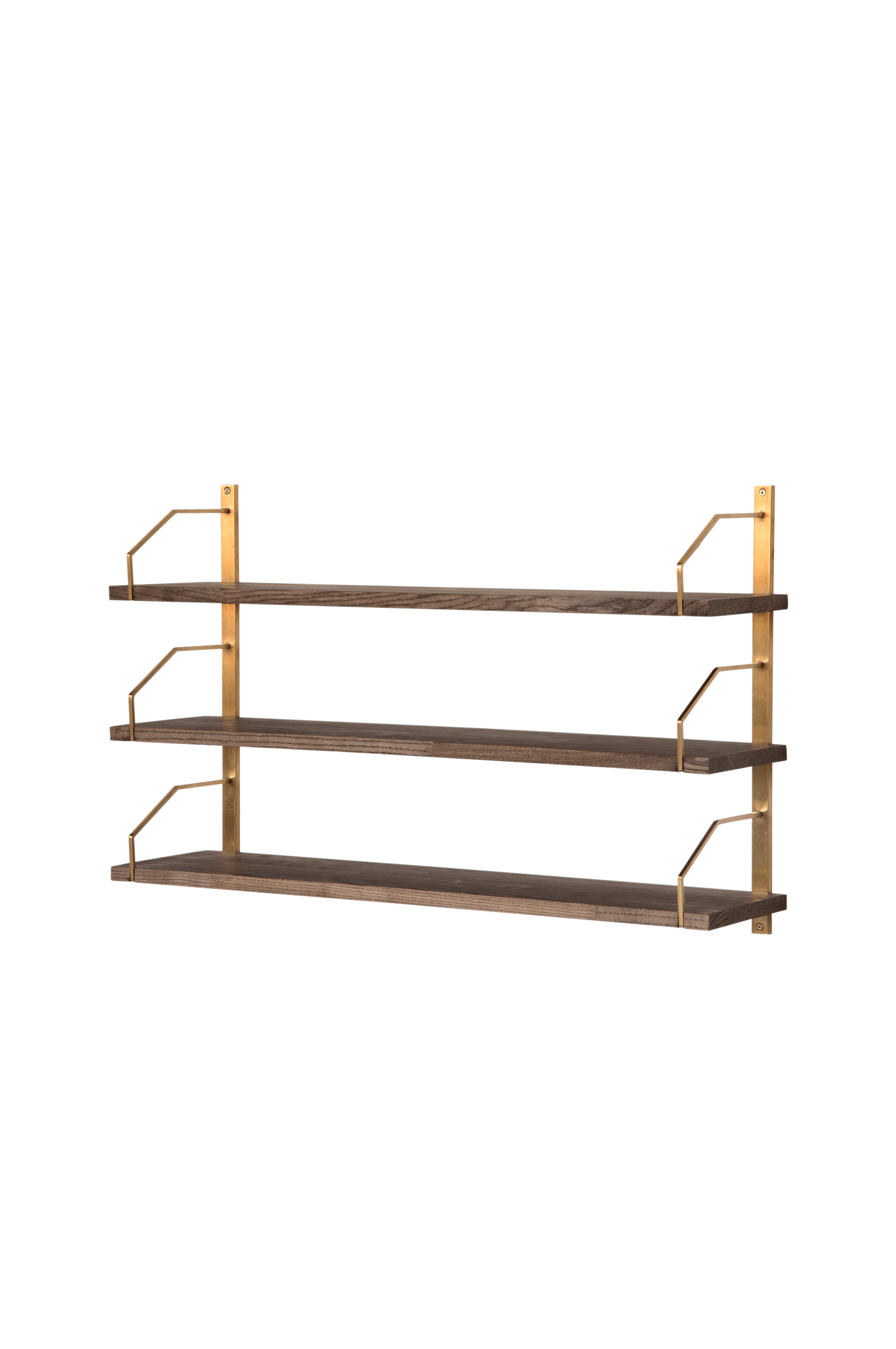 Square består av moduler i velgjennomtenkt design med fokus på form og funksjon. Denne kombinasjonen består av 2 stk veggkonsoller i messing og 3 stk laminerte hylleplater.