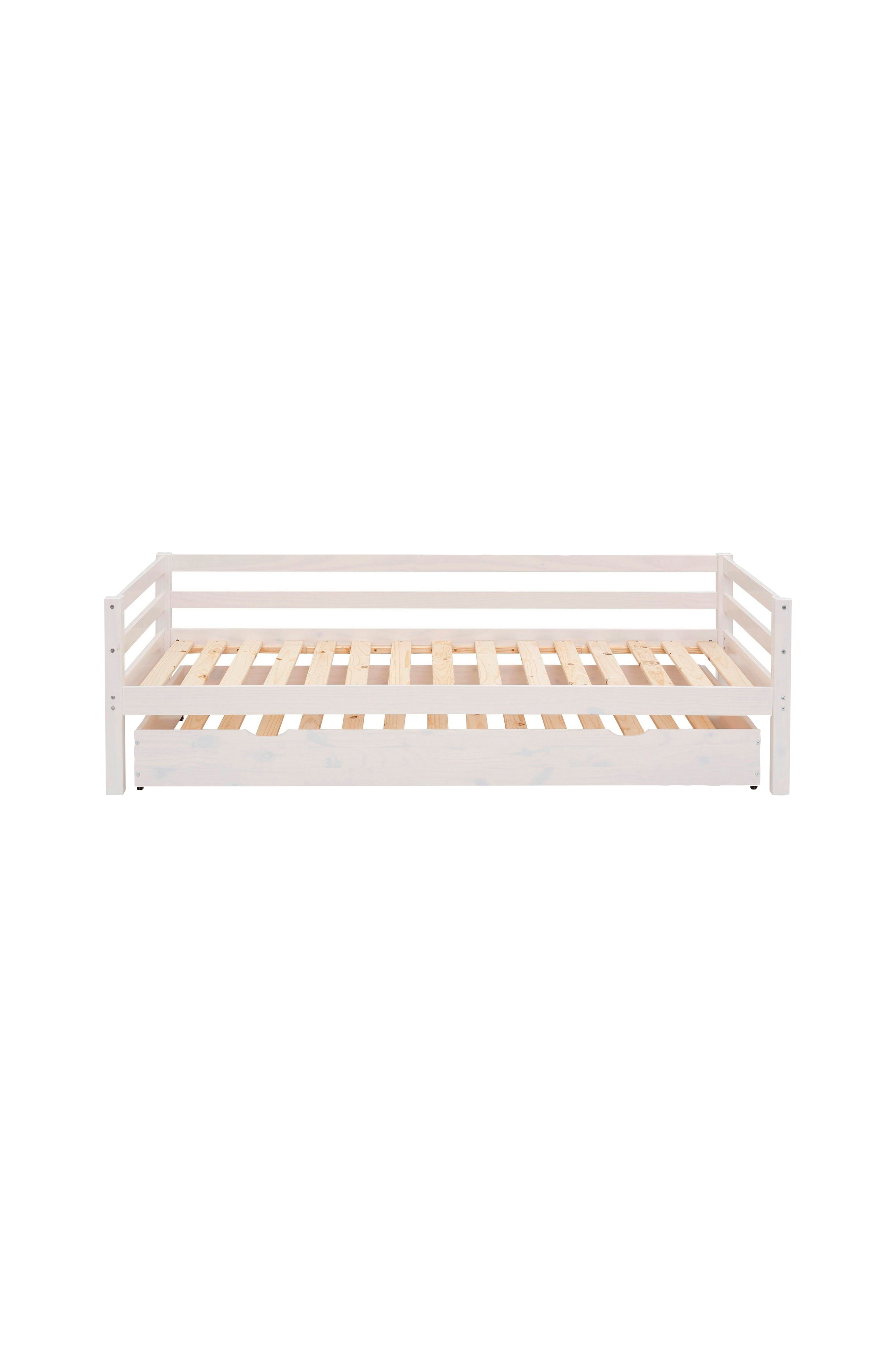 Sengen med sengeskuff bidrar til å skape en stilfull atmosfære på barnerommet. Utseendet i den karakteristiske herregårdsstilen understrekes av innrammingen i veggområdet og ved hode- og fotenden. Settet er utstyrt med en ramme som kan rulles opp, slik at du bare trenger den rette madrassen. Skuffen kan brukes som en ekstra seng til bestevennen din. Sovemøblene er laget av massivt furu av høy kvalitet som er fsc®-sertifisert. Det er tilgjengelig i attraktive fargevarianter som passer til den eksisterende innredningen. Med en uttrekkbar sengeboks er sengen en visuell og funksjonell berikelse for barnerommet.