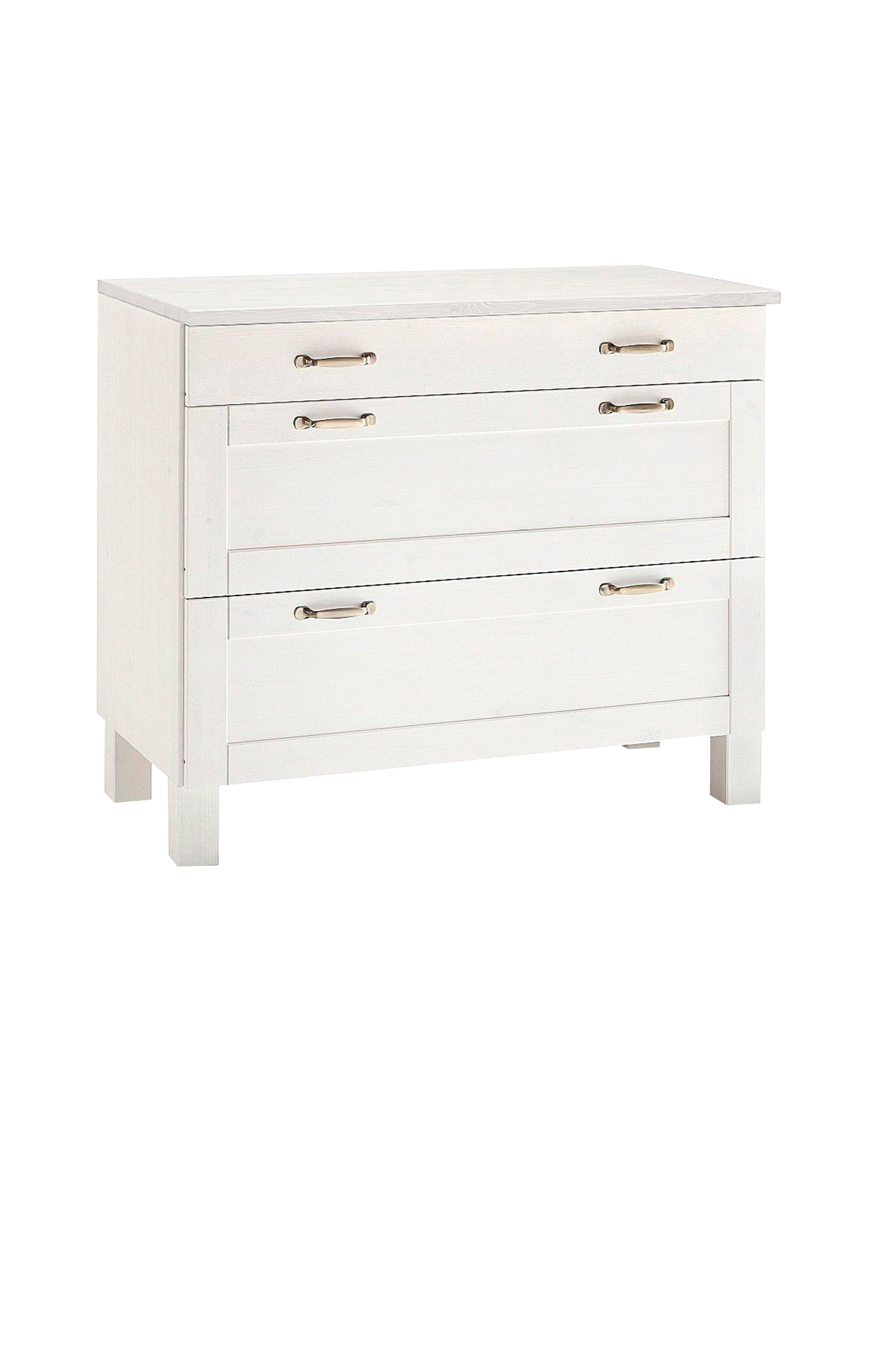 Naturlig sjarm: Kjøkkeninnredningen i moderne landlig stil skaper en hjemmekoselig og hyggelig atmosfære på kjøkkenet. En smal skuff og to andre romslige skuffer gir mye praktisk oppbevaringsplass til ulike kjøkkenredskaper og sørger for god og ryddig orden. Smakfulle metallhåndtak gir det vakre kjøkkenunderskapet i landlig design et elegant uttrykk. De diskrete føttene føyer seg harmonisk inn i helheten. Det attraktive kjøkkenskapet av høy kvalitet er laget av fsc-sertifisert, massiv furu og fås i en rekke hjemmekoselige farger. Enten som et formfullendt og funksjonelt smykke ved siden av komfyren eller som en dekorativ og romslig kommode i entréen. Tilgjengelig i flere farger.