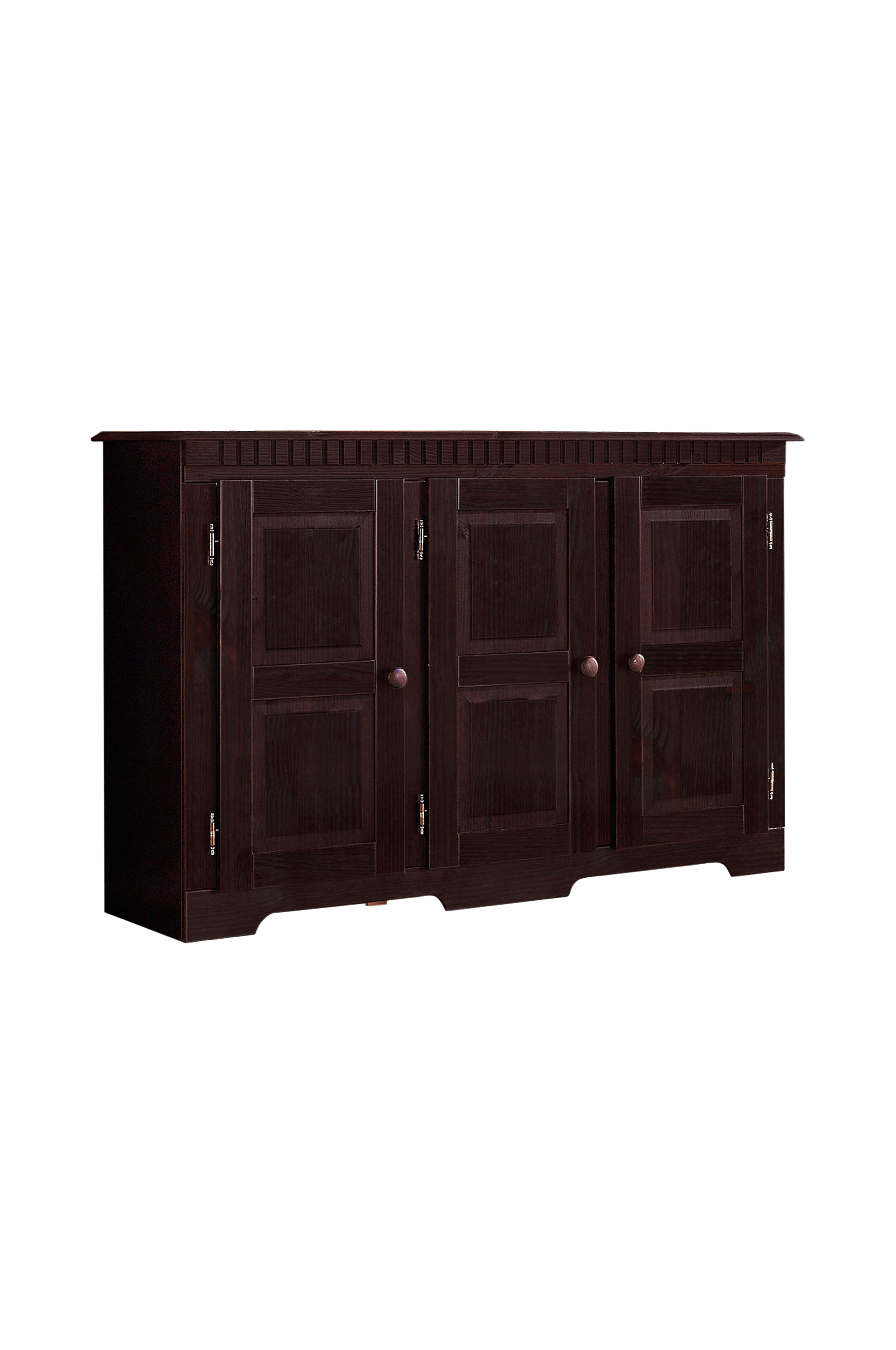 Tredesign med mange detaljer - skjenken imponerer med sine mange små detaljer og den vellykkede utførelsen. Det fsc-sertifiserte furutreet i kombinasjon med de individuelle årringene understreker det solide inntrykket av skjenken. Avflatete kanter, elegante hengsler, runde dørhåndtak og ulike dekorative elementer på og i treverket fullfører skjenkens sjarm. Bak tredørene sørger justerbare hyller for orden og rikelig med justerbar oppbevaringsplass. Enten det er i gangen, på soverommet, i spisestuen eller i stuen, gir denne skjenken hvert rom et spesielt preg.