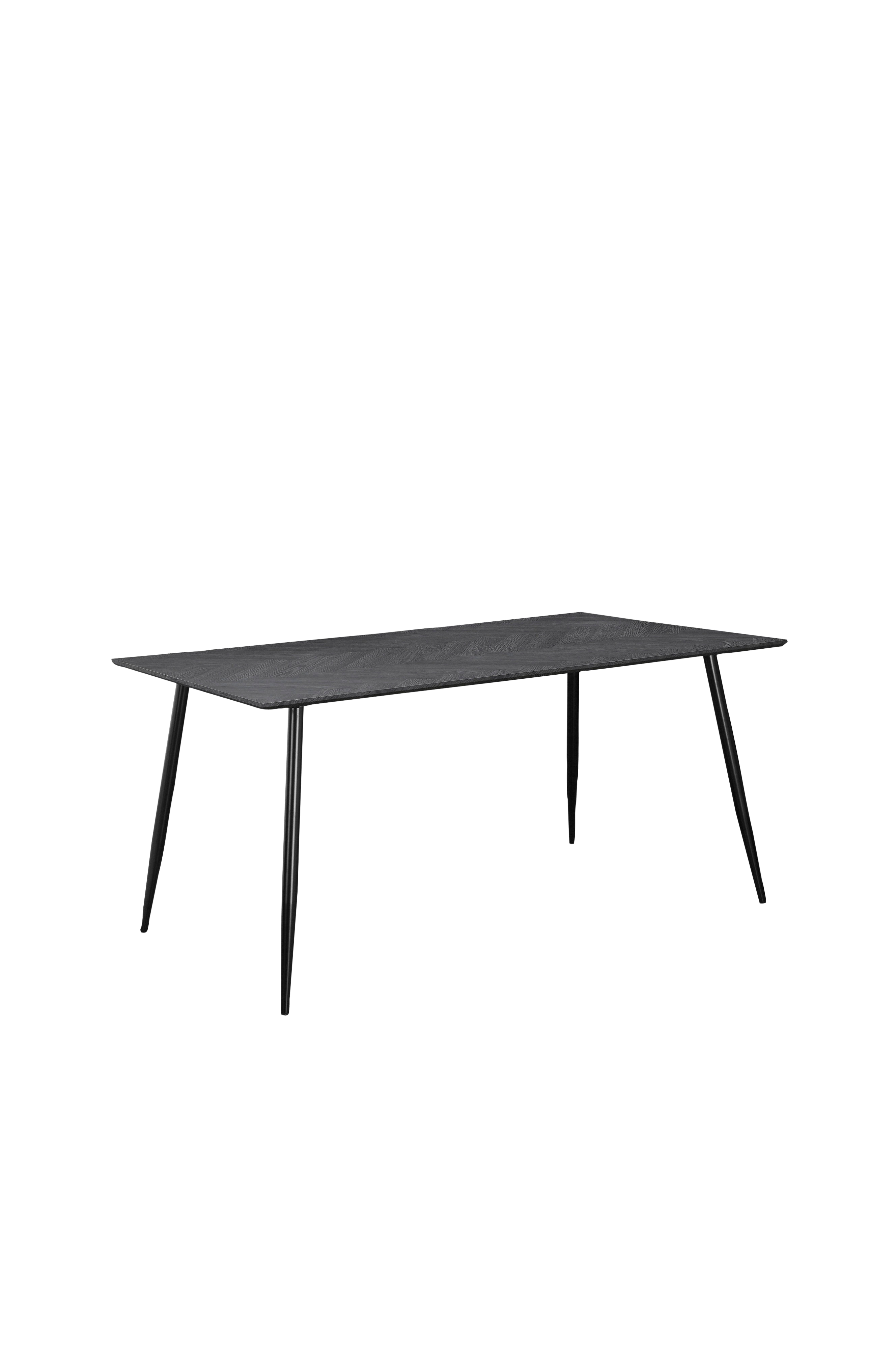 Dette spisebordet av høy kvalitet har et treutseende som forsterker den minimalistiske stemningen i spisestuen. Bordet har en vakker åretegning og skandinavisk design som tilfører et snev av eleganse. Det mørke jernunderstellet gir en slående kontrast som gjør det til et perfekt supplement til moderne og tidløs innredning. Bordplaten i slitesterk mdf er enkel å rengjøre og vedlikeholde, noe som sikrer både stil og komfort i spisestuen din.