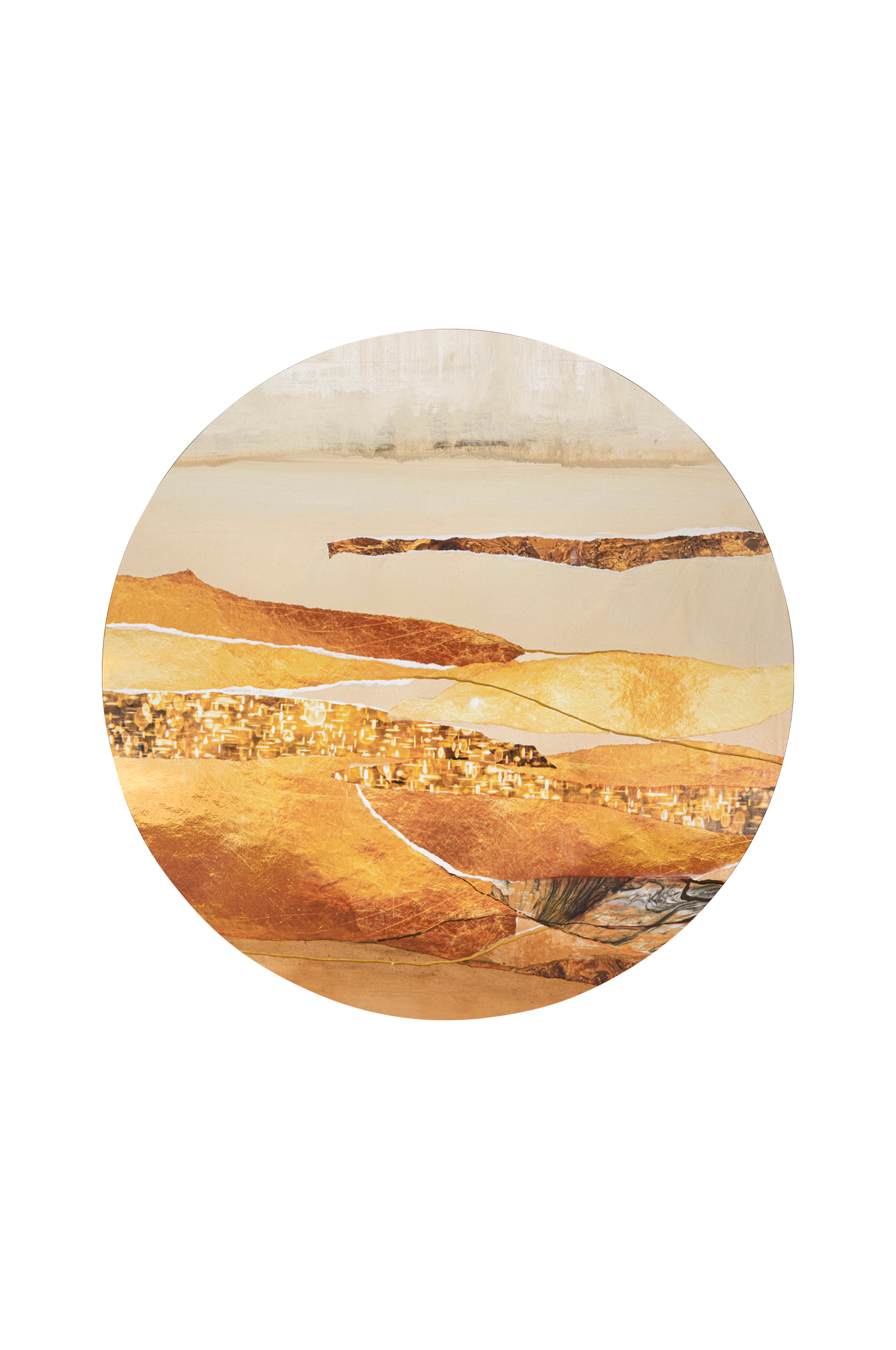 Bilde fra Malerifabrikken. Trykk på rund MDF-plate. Når bildet henger på veggen gjør profilen på platen at fronten «svever» ca. 0,5 cm fra veggen.